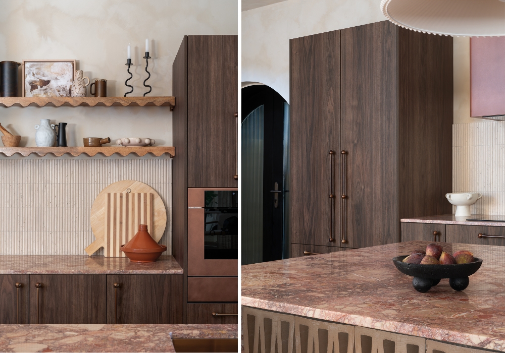 Among the many standout features of this remarkable renovation is the cabinetry, showcasing polytec’s Rojo Walnut Woodmatt decorative board, achieving the rich, textured aesthetic that defines the home. Rojo Walnut not only adds warmth and depth to this inviting space but also complements the industrial elements of the design.