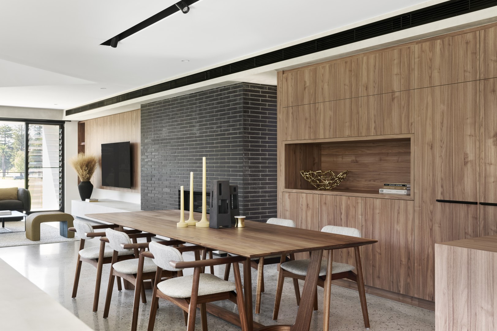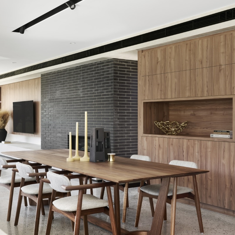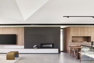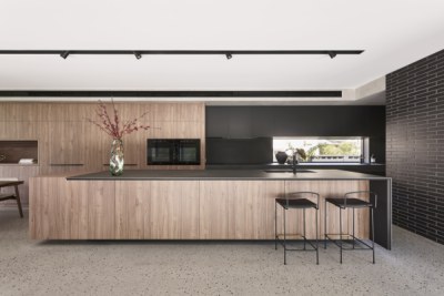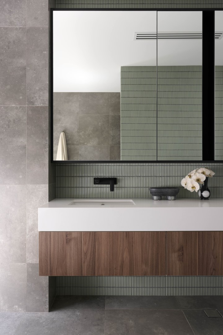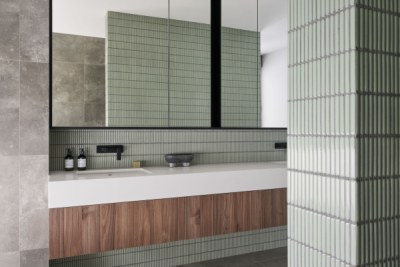 Gregory St has been designed with a timeless aesthetic and richness of material. With clean lines, large expanses of glass and a horizontal emphasis the home maximises the lake views before it. The ceiling volumes have been sculpted to delineate areas the otherwise open plan design. The consistency of materials throughout the residence creates the illusion of greater space than the actual floor area. The colour palette of Notaio Walnut and green kit-kat tiles, emphasised this homes connection with nature.