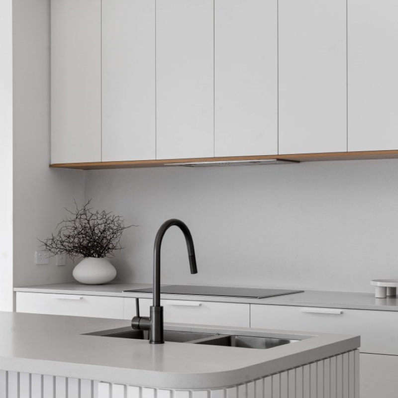 Ara Street, Camp Hill is an incredibly rewarding collaboration project. Light and airy, this contemporary home evoke a sense of tranquillity and modernism. With pops of gunmetal tapware and oak.