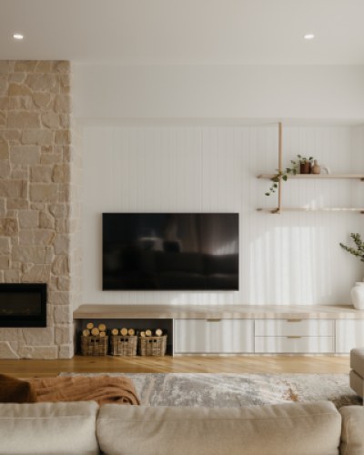 A stunning family home set in the coastal suburbs of Adelaide. Texture, warmth and interest is created by the layers of materials and details. A neutral palette was provided for the residents to add their own personal touch over the years as their family make the space a home. The soft, warm tones of Oyster Grey and Coastal Oak are used throughout the home in different formats creating consistency and showcasing the versatility of polytec's products.