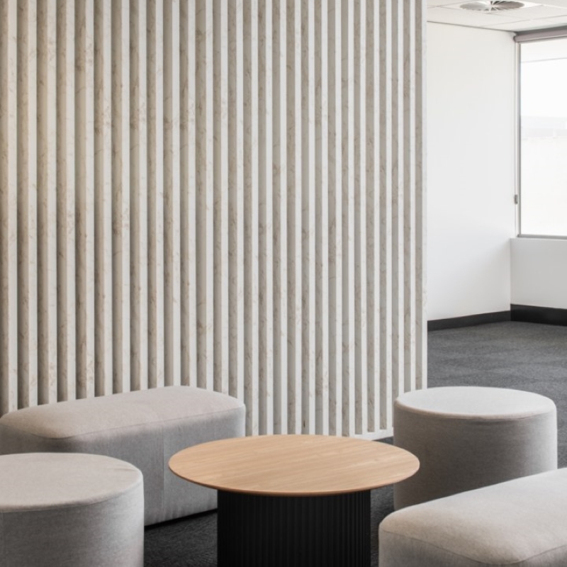 A corporate office rich with history, heritage and connection to the Tasmanian landscape. From the outset, the interior design centred around neutrality and freshness, providing a blank canvas upon which the future could unfold. Inside, the space exudes versatility and adaptability, with modular furnishings and flexible layouts catering to the ever-changing needs of the modern workforce.