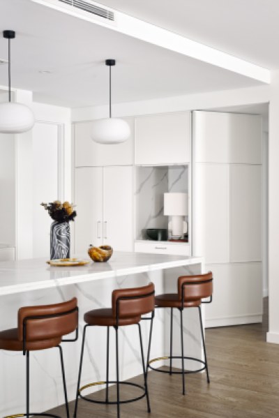 Dualism is a tranquil home that reconciles its owners’ rituals with contemporary comforts and functionality. Bathed in light and organic textures and surrounded by a lush garden, the home blends contemporary architecture with a bucolic setting. The living space is lined with glass sliding doors that lead to an equally impressive outdoor kitchen and the primary dining space. In summer, the space opens to a tranquil garden with a meditation platform and pond.