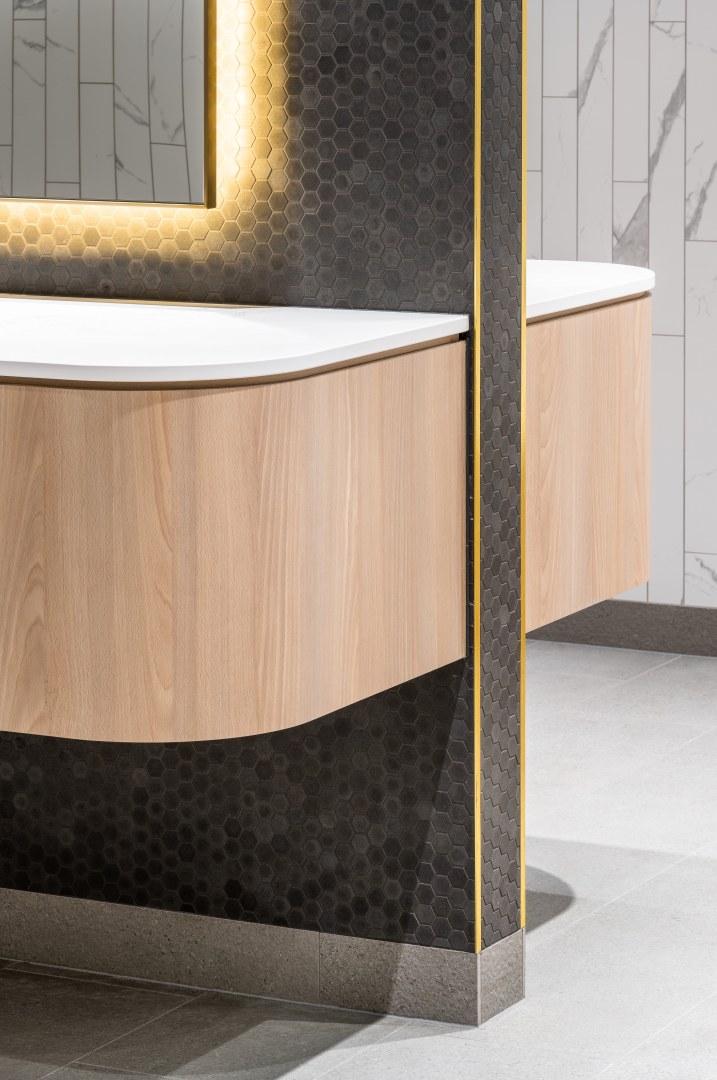In a prominent pocket of Melbourne’s CBD, the end of trip (EOT) facilities at 287 Collins more closely resembles a luxury hotel than workplace. The refined palette and curved lines throughout pay homage to the Art Deco building, while the selection of durable materials and strategic placement of facilities ensure optimum functionality.