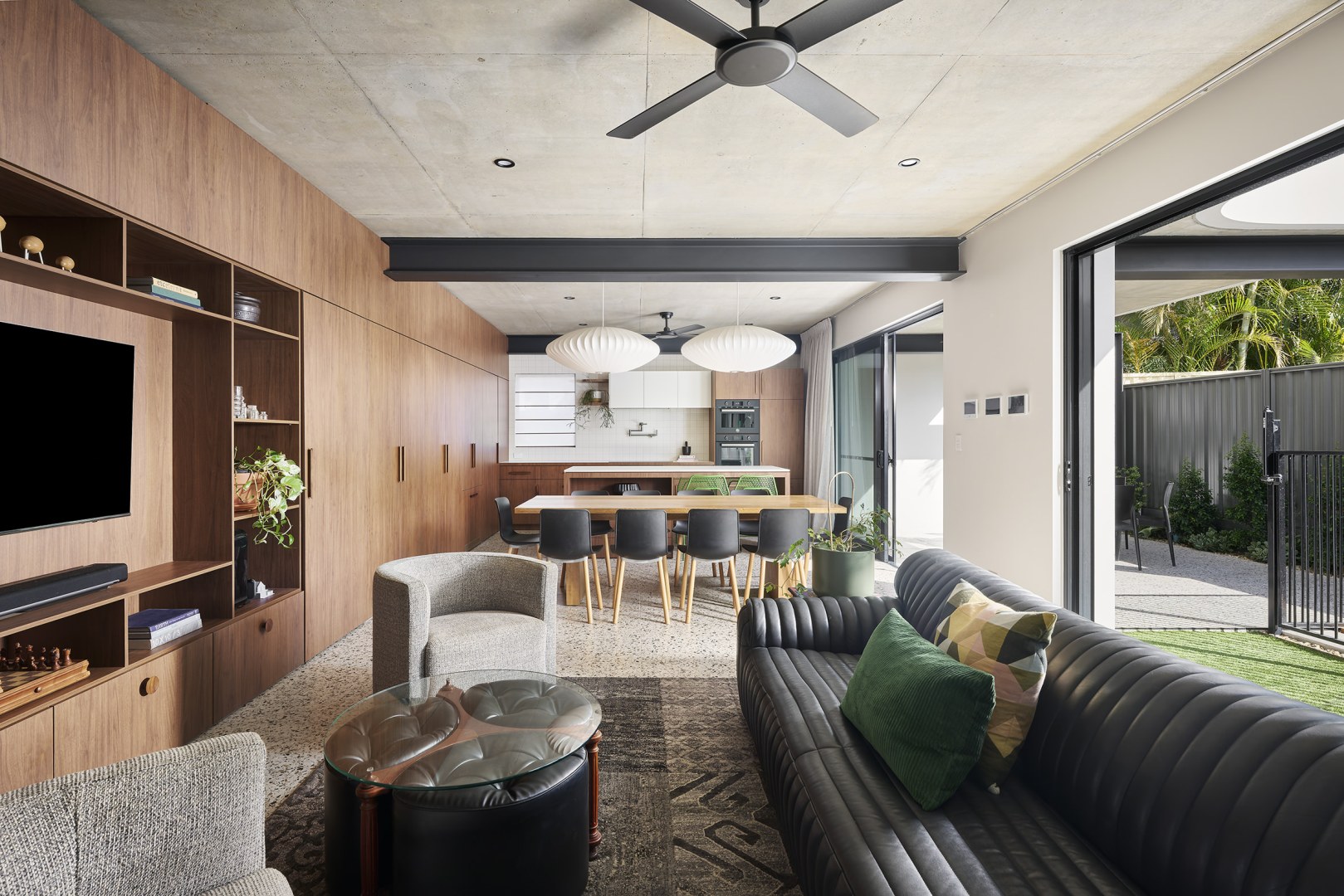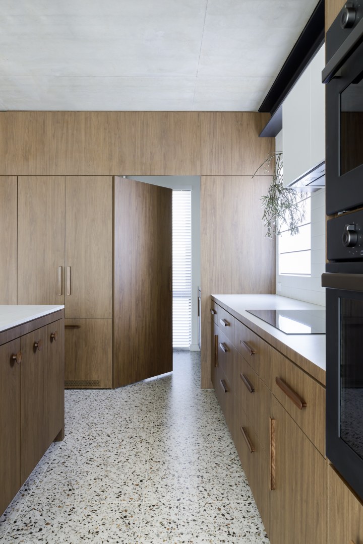 A client brief for a warm, nostalgic and harmonious link to the home’s exterior and surrounding suburb combined with a compact site necessitated the use of a limited materials palette. polytec products were ultimately chosen for their low VOC emissions, environmental and sustainability commitments, and exquisite colour and texture range.