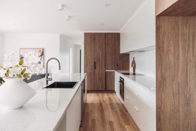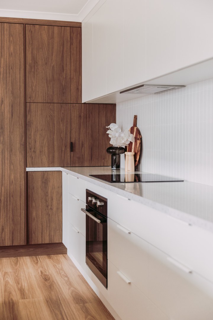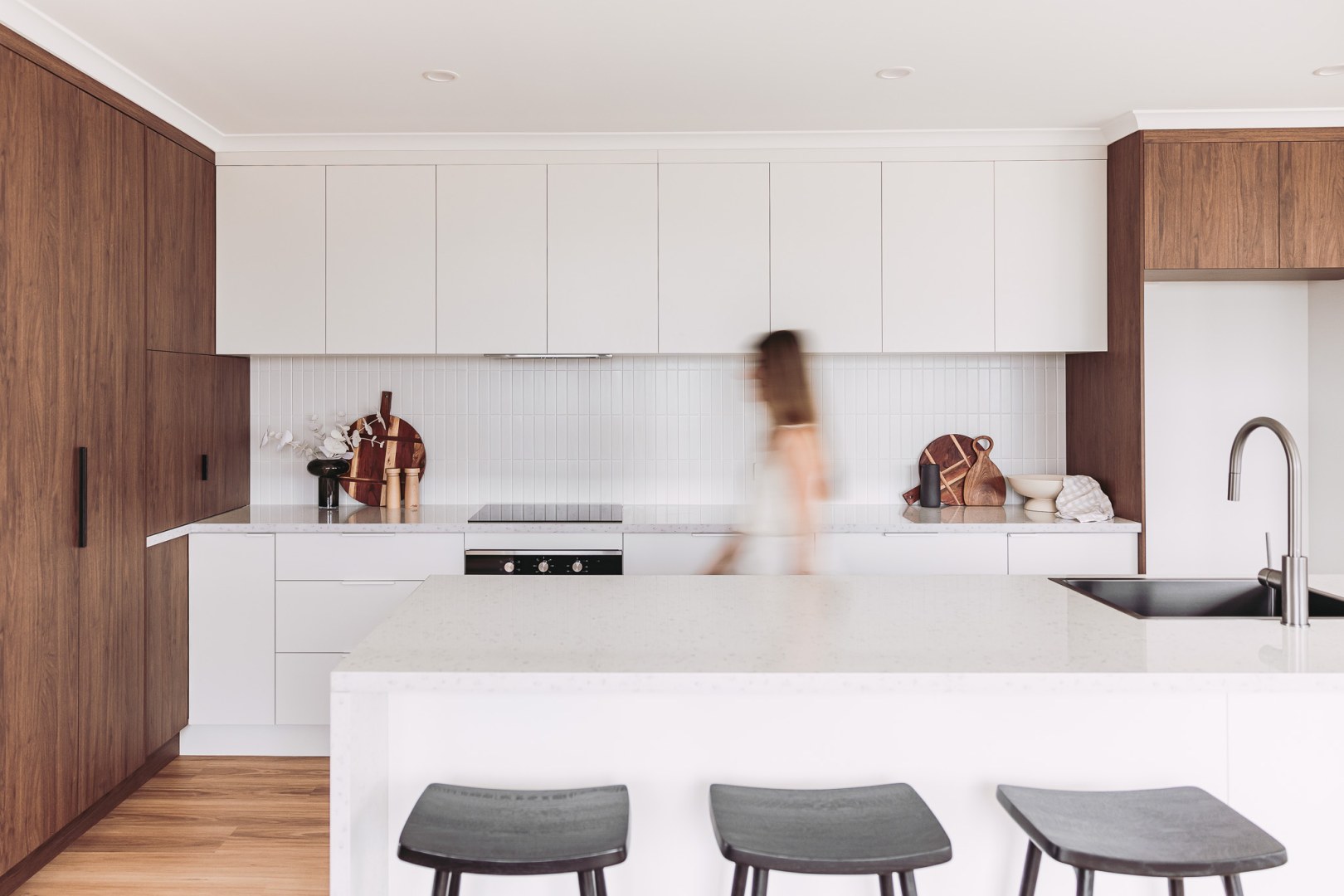 Haus Three epitomises timeless elegance, showcasing a harmonious fusion of walnut and white hues within its kitchen design. With a focus on creating a space that exudes warmth and homeliness, this project effortlessly combines contemporary aesthetics with classic elements. The result is a simple yet sophisticated kitchen that will stand the test of time.