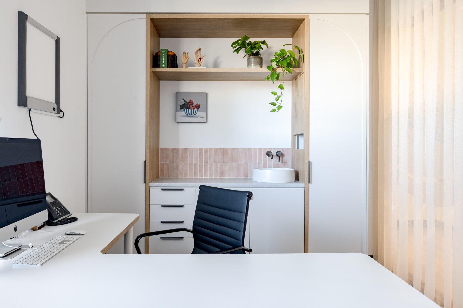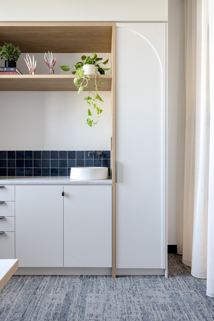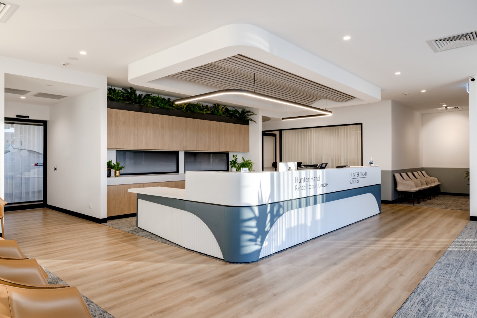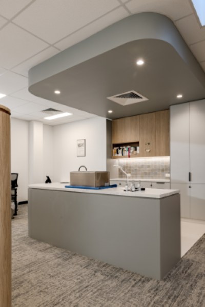 The design brief focused on creating a bright and airy atmosphere for two businesses to coexist yet delineated functionally. The layout was carefully planned to ensure seamless flow for both staff and patients.