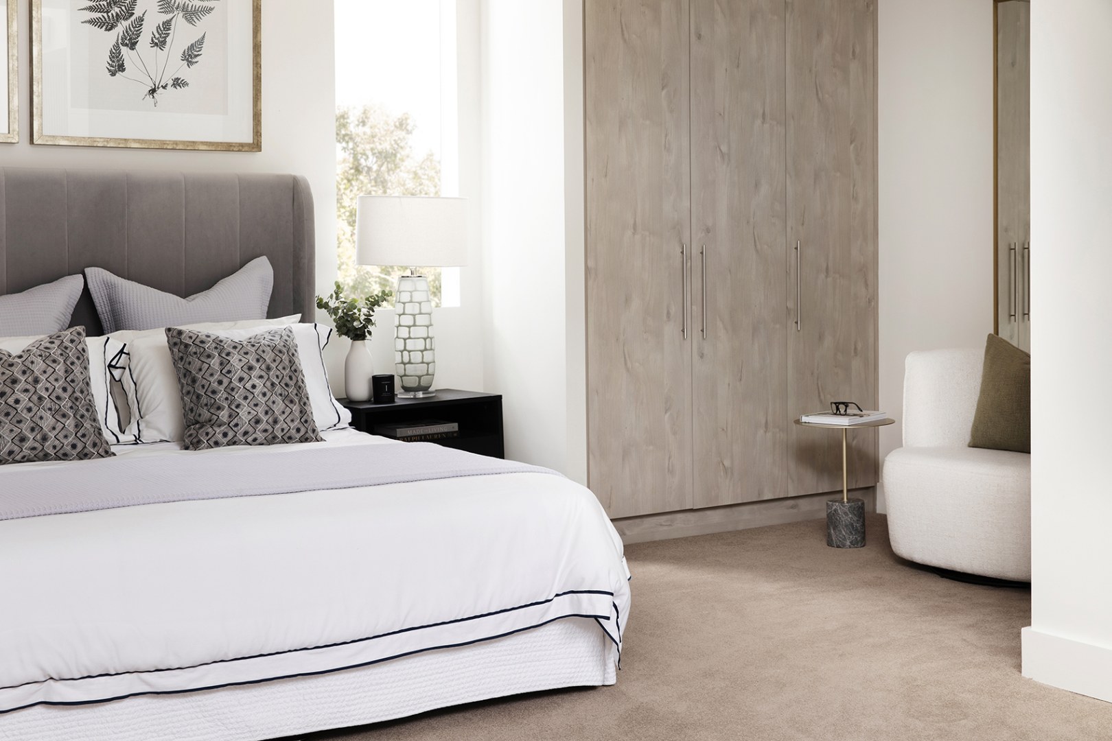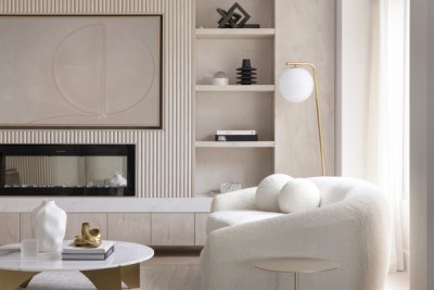 polytec Angora Oak and polytec Angora Oak Steccawood Half Round battens were used extensively in the Hyegrove Willoughby Display Apartment for 116 independent living units in a world class retirement living project in Willoughby, on Sydney’s Lower North Shore. The use of the Polytec products in the kitchen offered a stunning curved design to both the kitchen island and the overhead cupboards. They were also used around the in built fireplace which presents as a stunning feature.