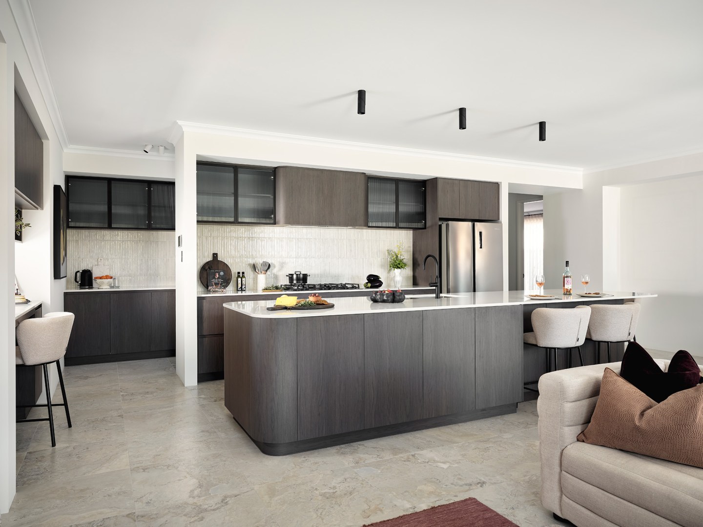 The Idaho display home built by Dale Alcock Homes and The Maker Designer Kitchens balances family living with the entertainers dream.