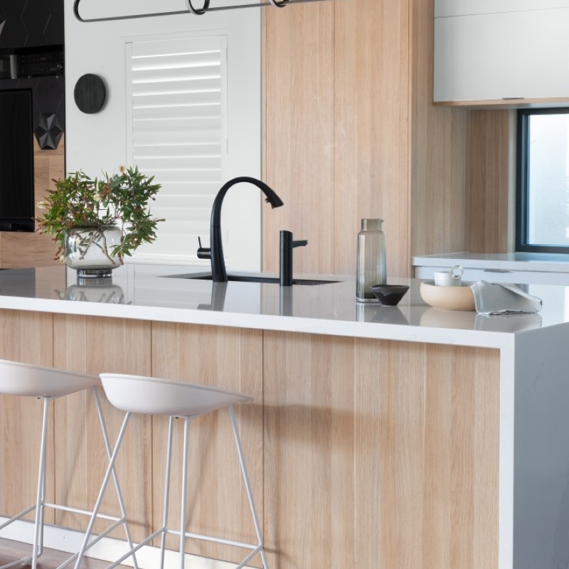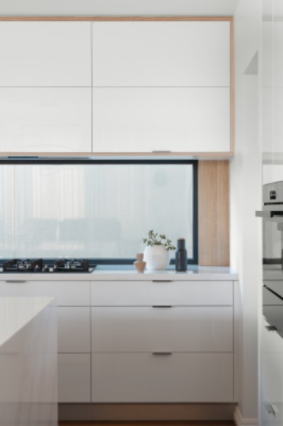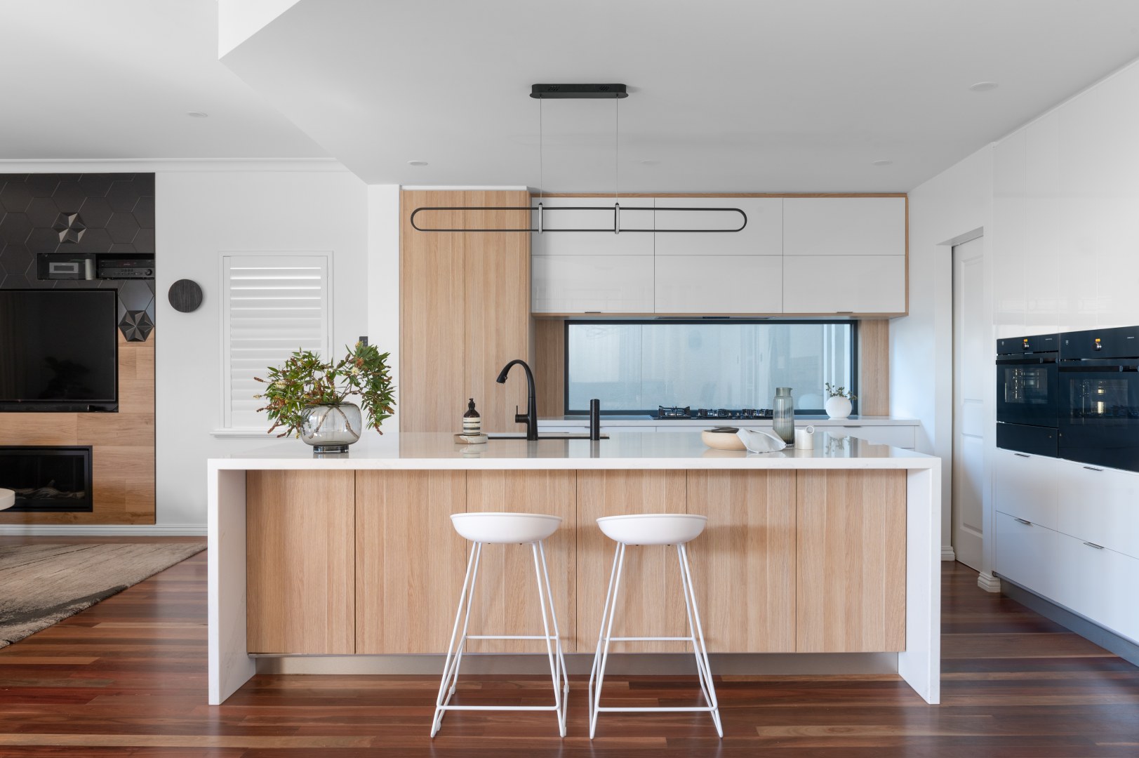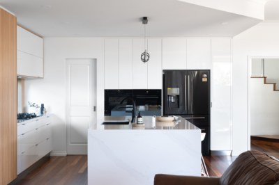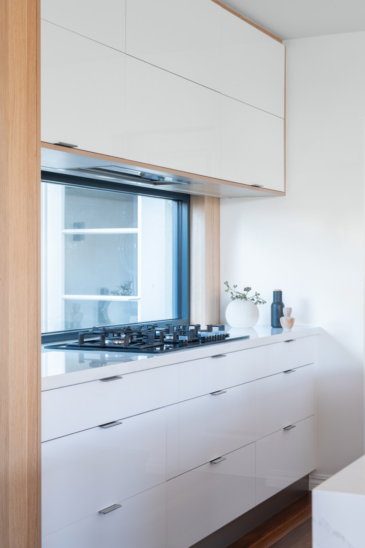 Our Client approached us assist in redesigning their kitchen to suit a new window behind the cooking area, brighten up the space, and blend into their existing colour scheme. Contrasting negative detail and subtle design elements create a bright and warm space, an abundance of storage and the inclusion of bold feature colours for the appliances & fitments blend seamlessly to compliment a very polished home.