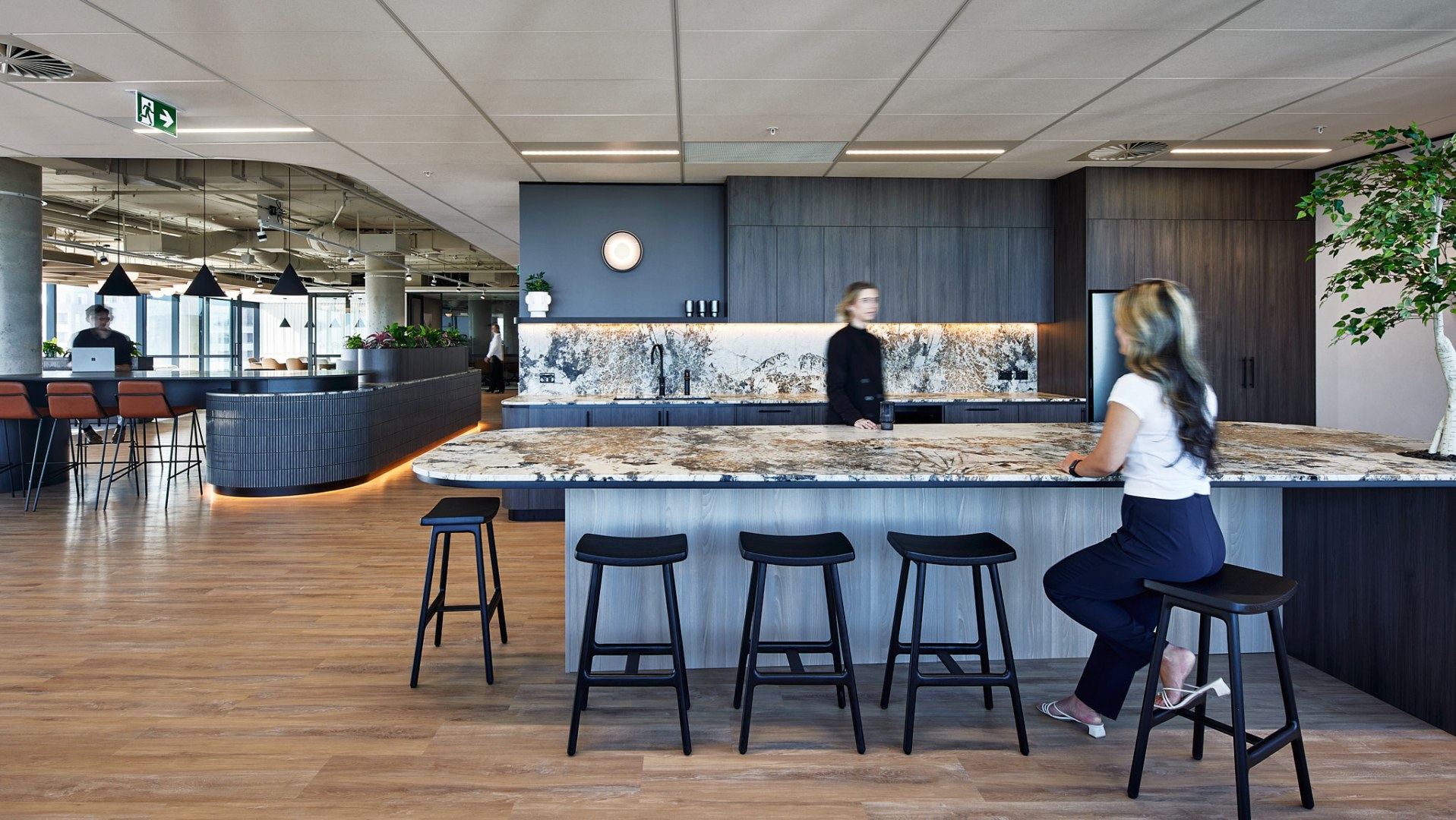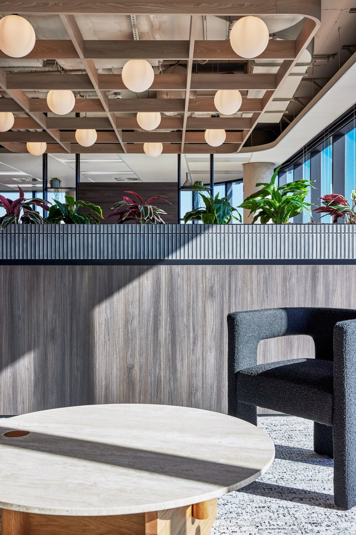 JQZ's brief revolved around crafting a full floor speculative suite that stands out in the market and seamlessly integrates with the high-end aesthetic of the St Leonards development. Sheldon designed and constructed a large open plan breakout area at the entrance of the suite to accommodate entertaining, collaborating and presentations. Unique features of the space include a custom quiet library area with bespoke joinery and acoustic ceiling tiles.