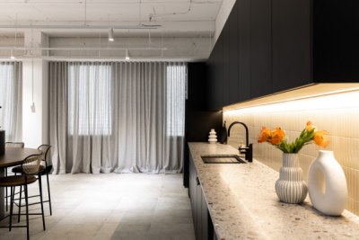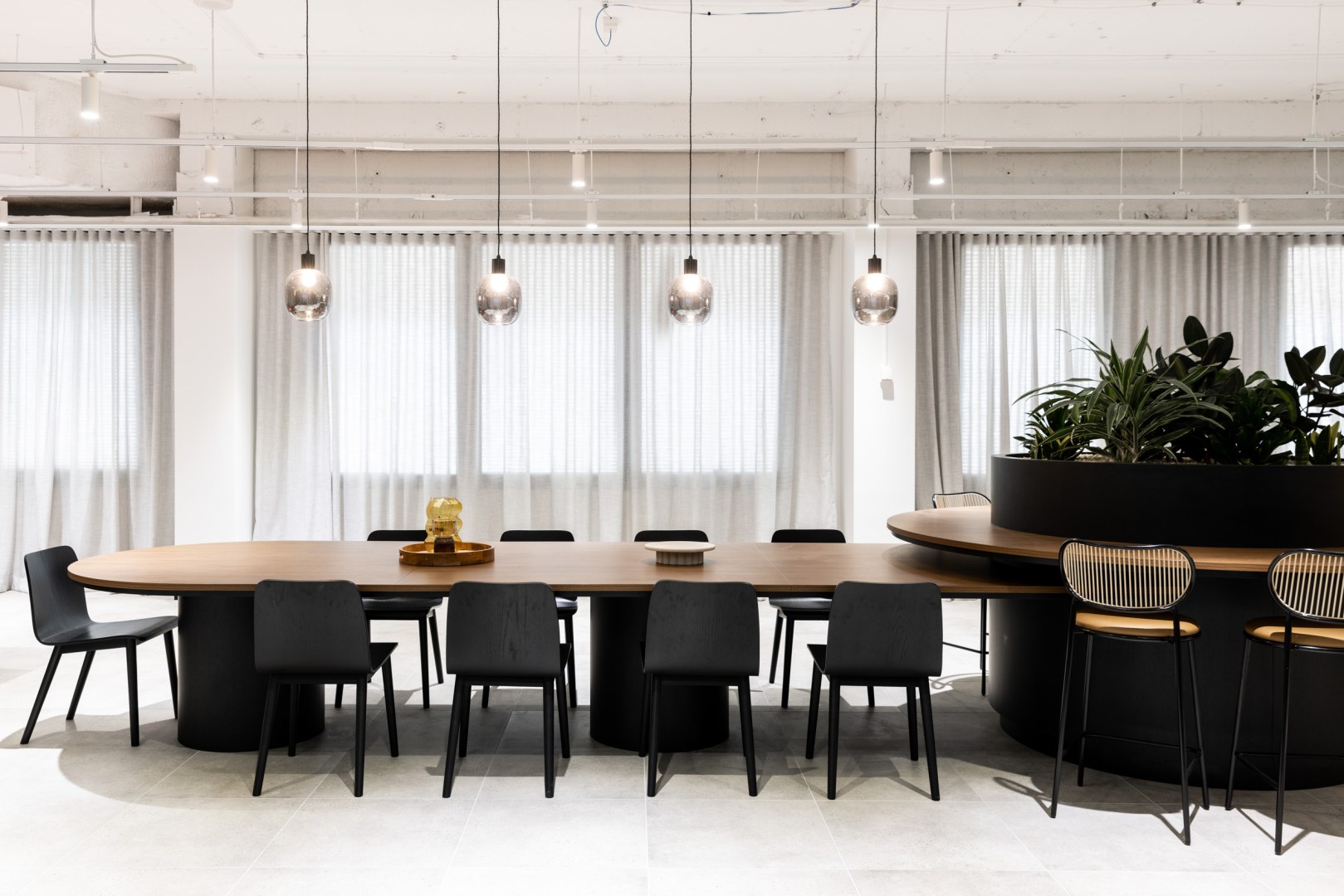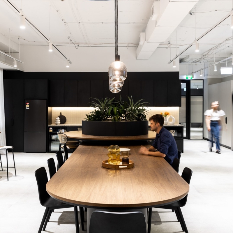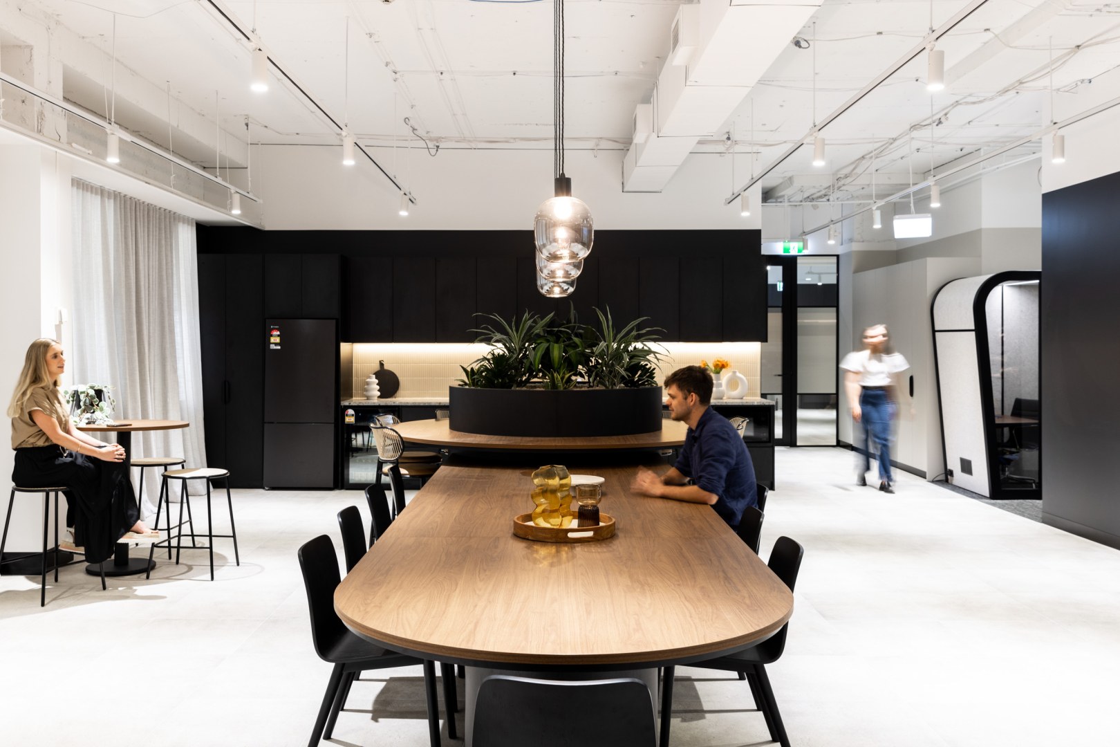 Surrounded by parkland in Sydney CBD, Lawson Elliott’s workplace boasts elegance, taking notes from boutique art deco design. A nod to the art deco building is created though the bold colours and dramatic lighting. The custom joinery is testament to Sheldon craftsmanship, with bespoke features like an awards wall, shelving, and a unique, luxurious kitchen design. Soft residential furnishings, coupled with biophilic elements for wellbeing, enhance the comfort and atmosphere.