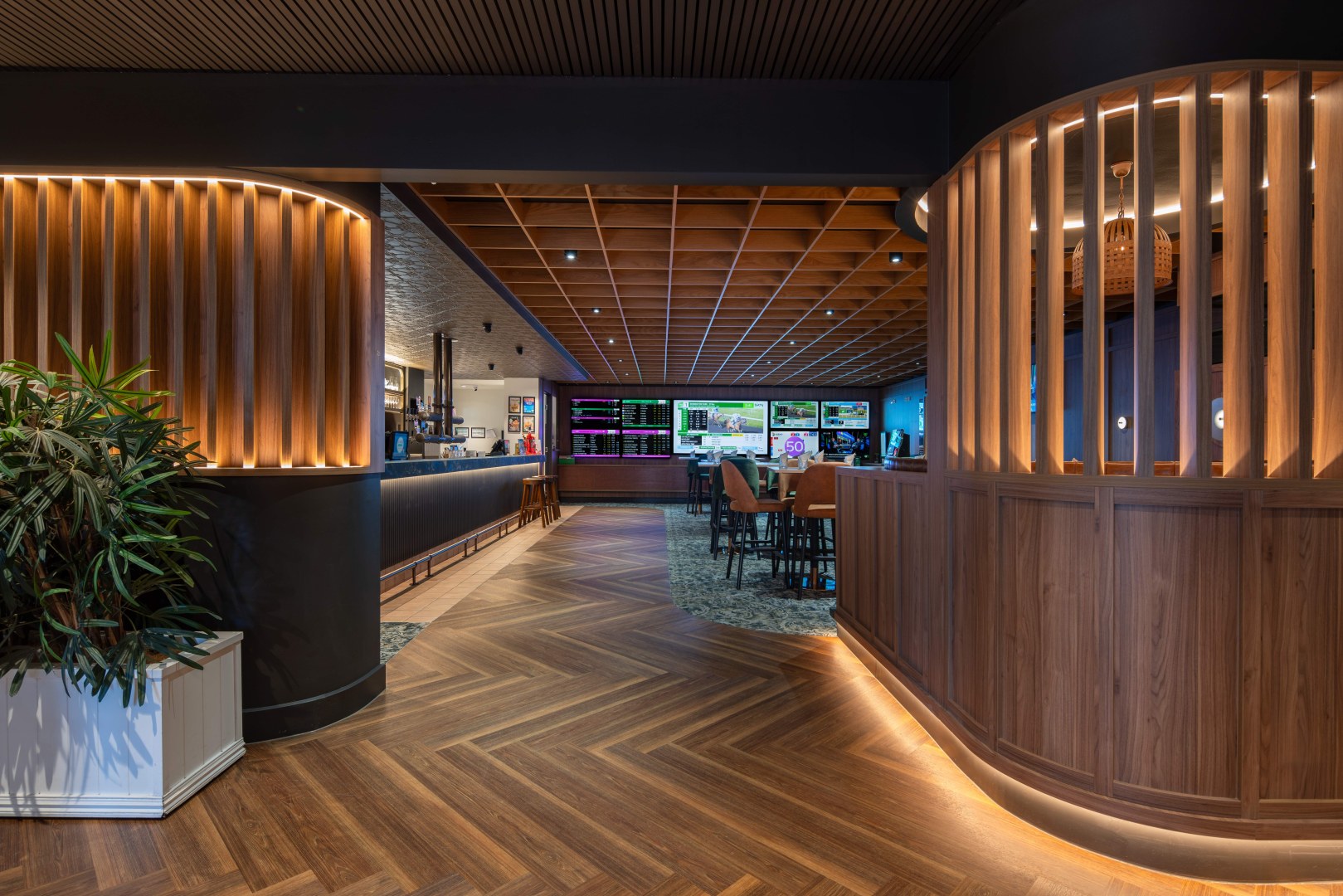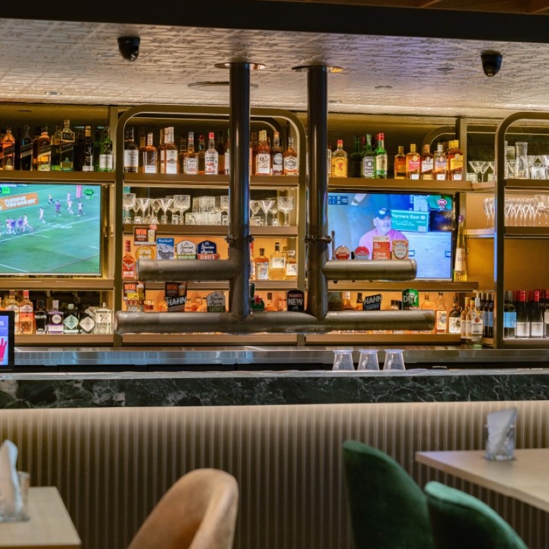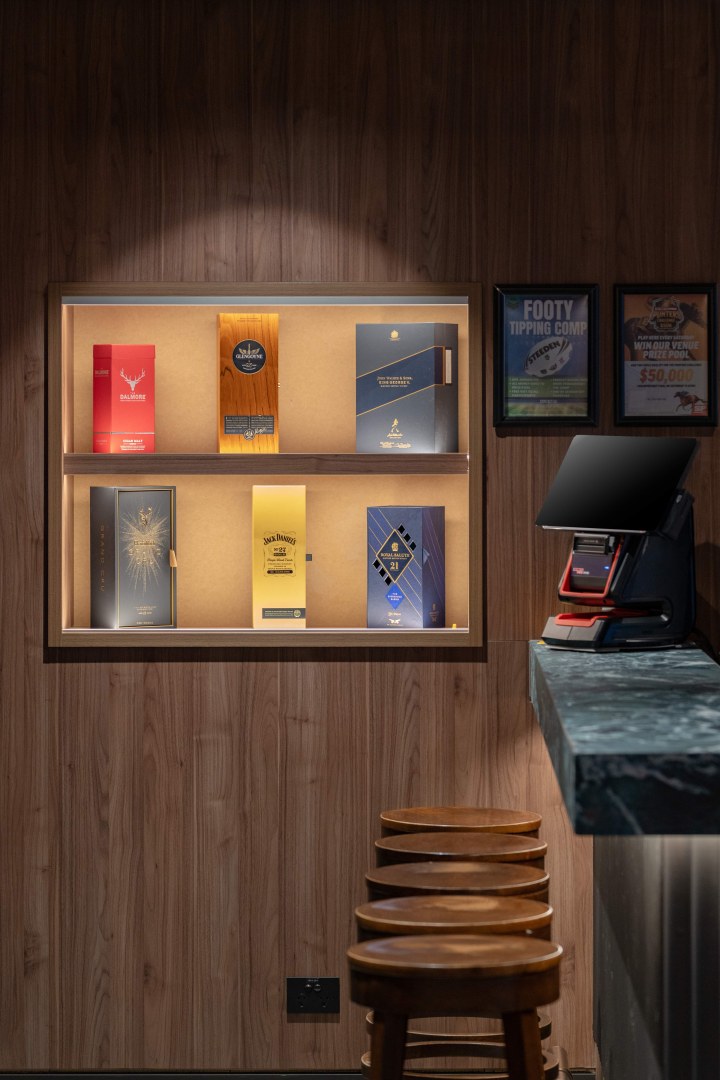 The project involved reconfiguring and expanding the existing tavern. Creating new bars, dining experiences, kitchen and back of house facilities to cater for all areas of the Tavern . With a modern take on the traditional sports bar, the team involved created this timeless whiskey bar utilising Notaio Walnut to bring this concept to life for the patrons.