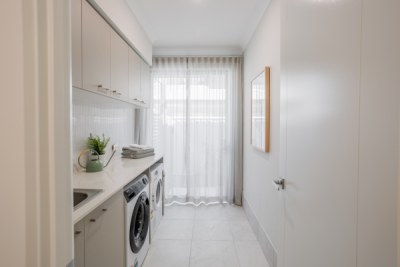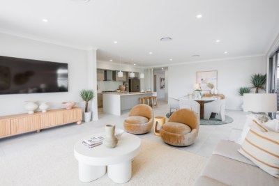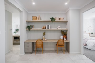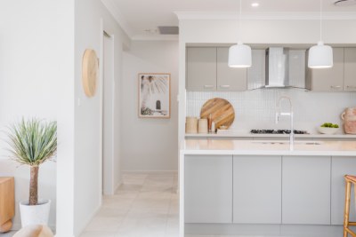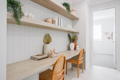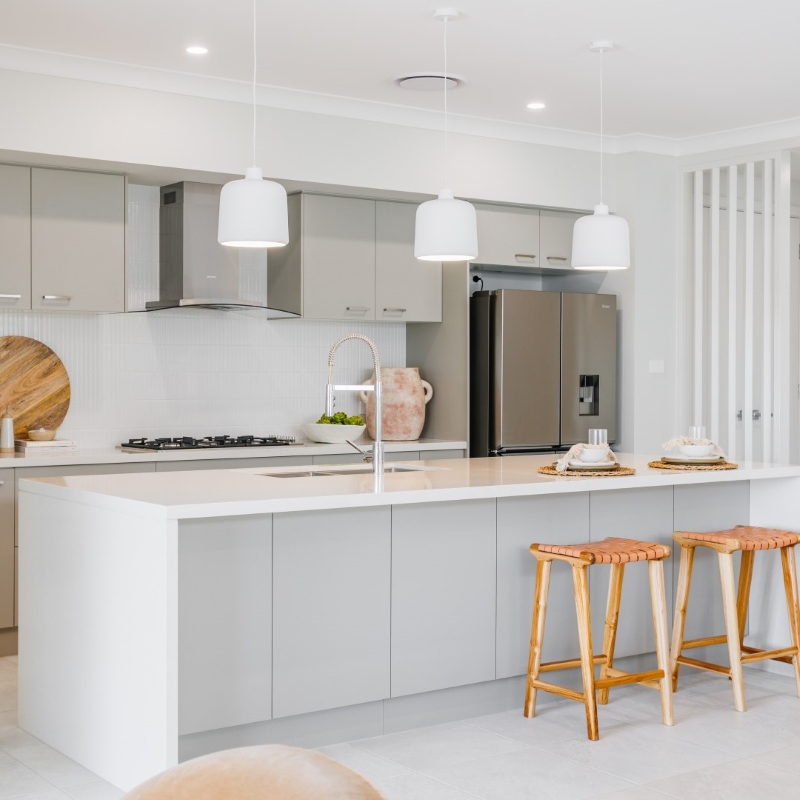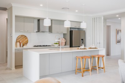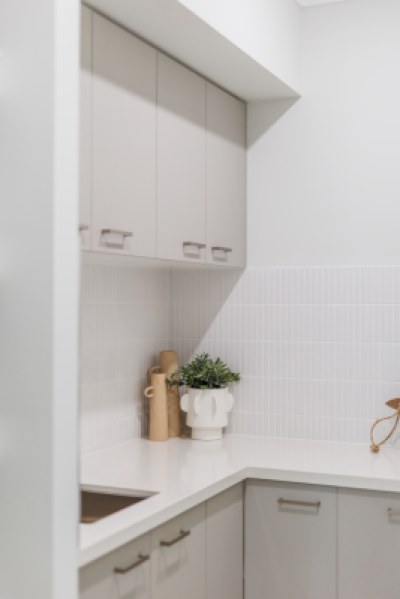 The style of the Malibu is ‘Sophisticated Boho’ with colours and materials that are very soft, natural, earthy, and relaxed. The home has a ‘gathered’ aesthetic which is synonymous with this look, and includes elements such as plush rugs, curved furniture, light timber, textured fabrics, photographic artwork, and hero colours such as rust, terracotta and forest green. polytec's Bespoke Woodmatt and Ligurian Walnut Woodmatt perfectly compliment this soft, relaxing colour palette.