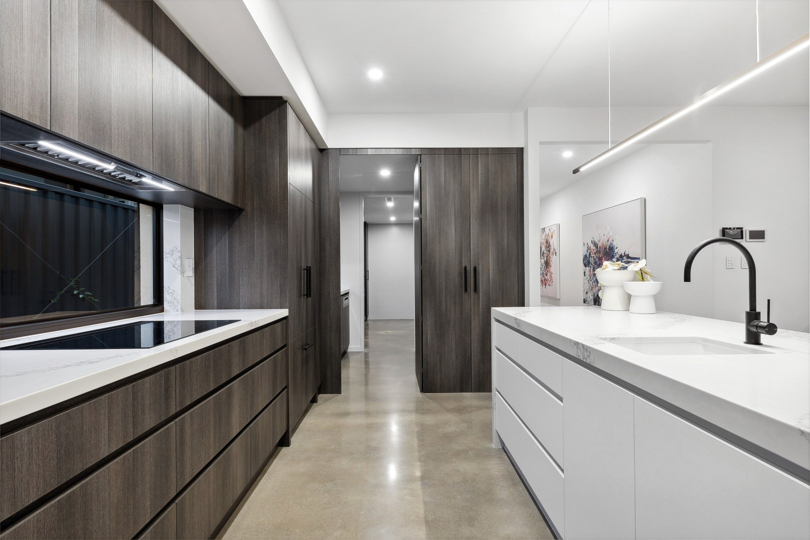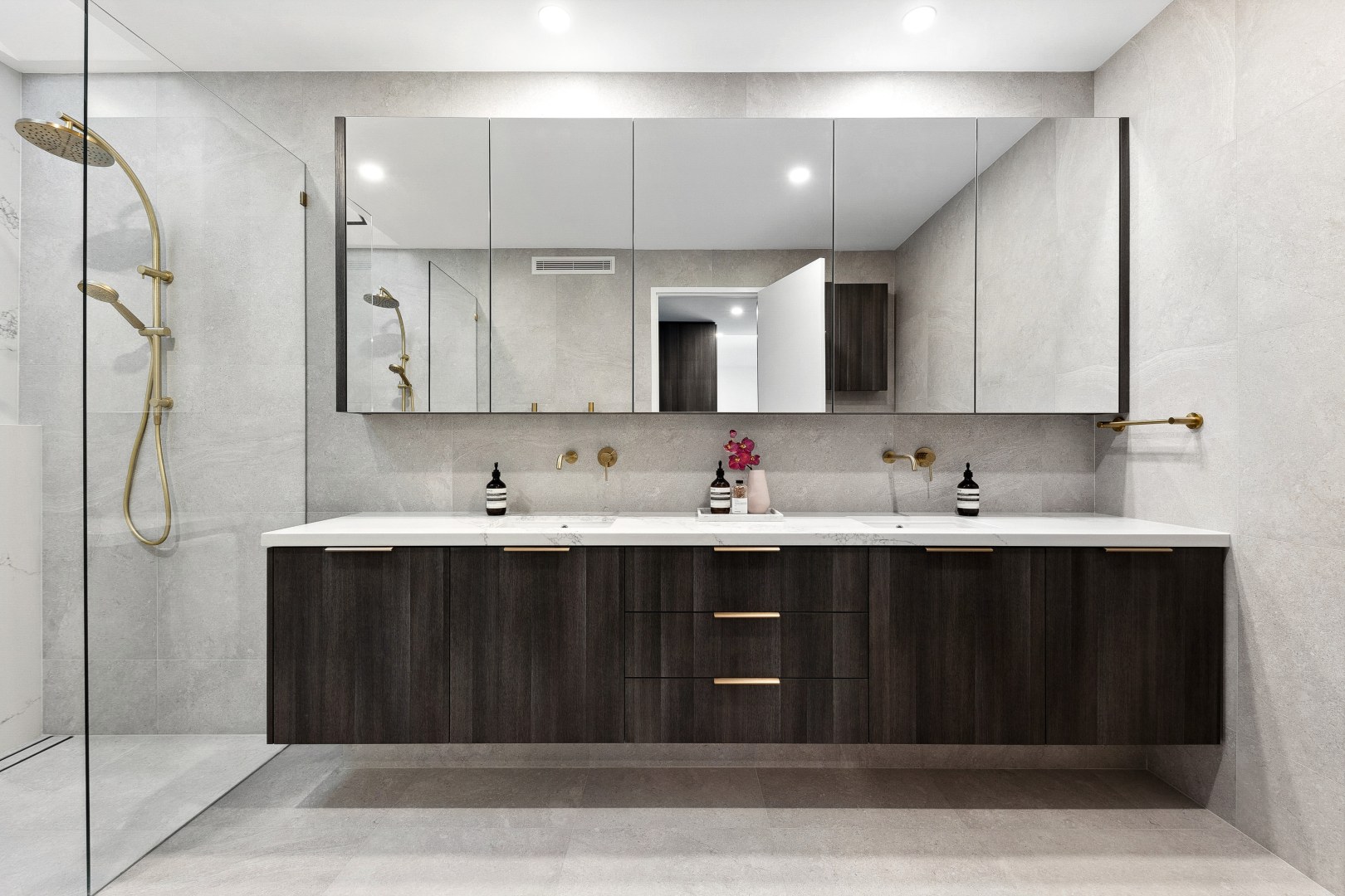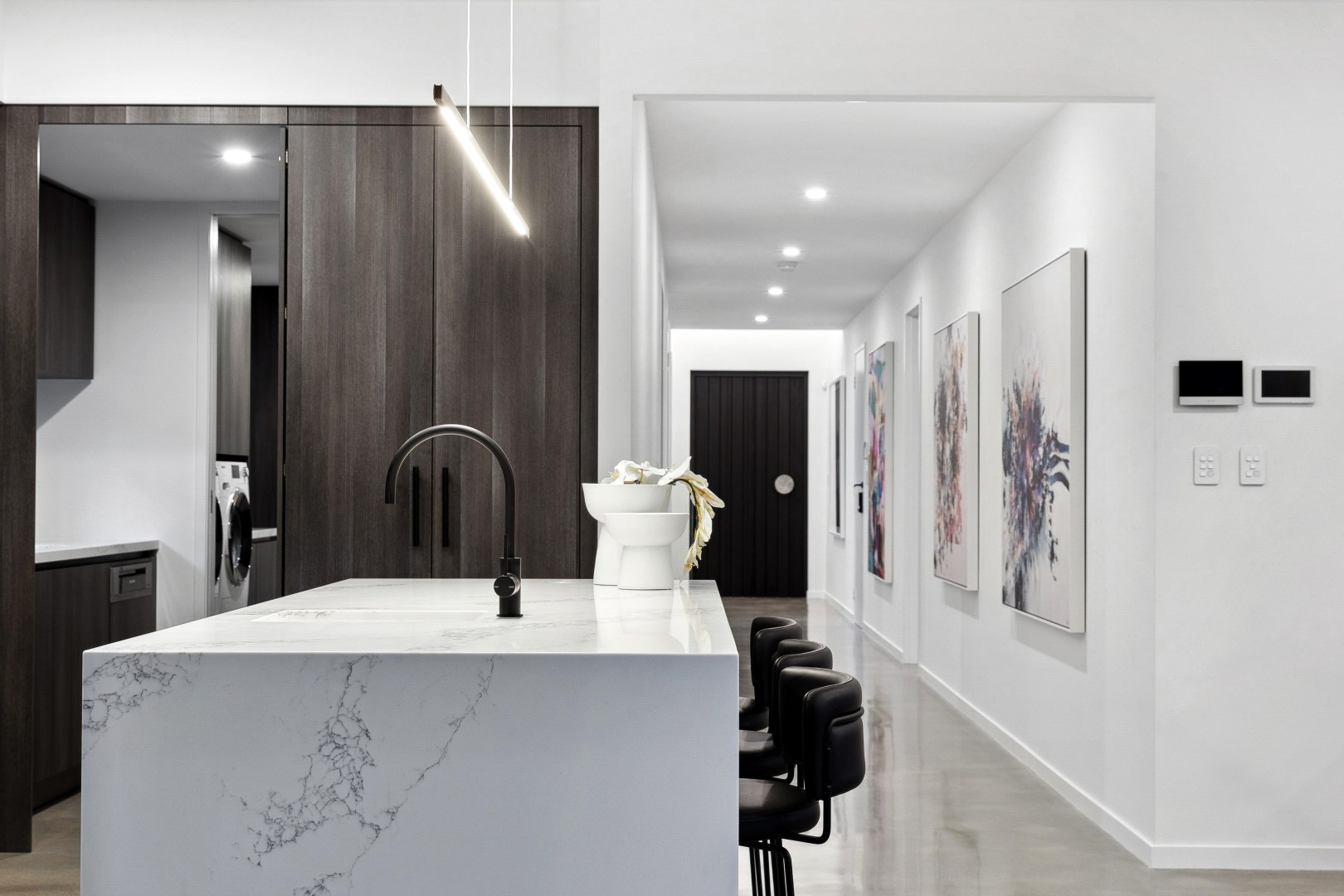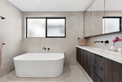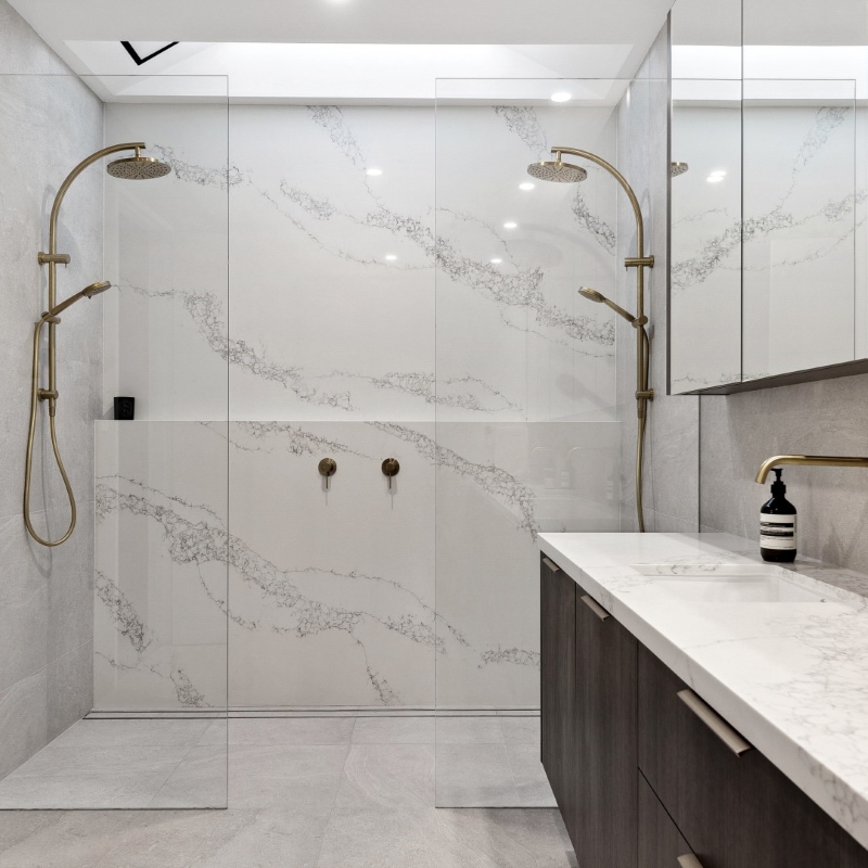 This gorgeous home by the Swan River is open plan living at its best! Offering a harmonious connection between the outdoor living space and the indoor kitchen, dining and living areas. The stone featured in the kitchen and bathrooms compliment the bespoke cabinetry, creating areas that are inviting and elegant.