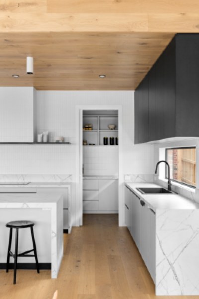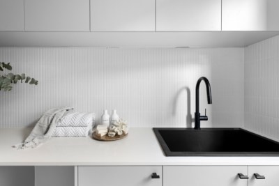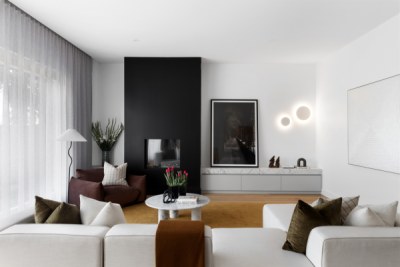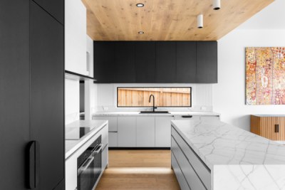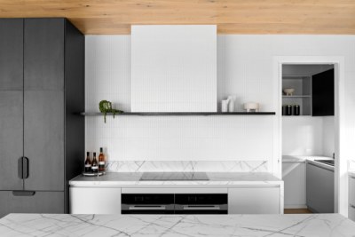 This home takes on a modern monochrome palette, injected with warm timber elements, creating a sleek yet homely aesthetic. Sleek lines with refined materials create a subtle luxury with custom steel doors, feature lighting and a wine cellar just a few elements that add to the home’s flare.
