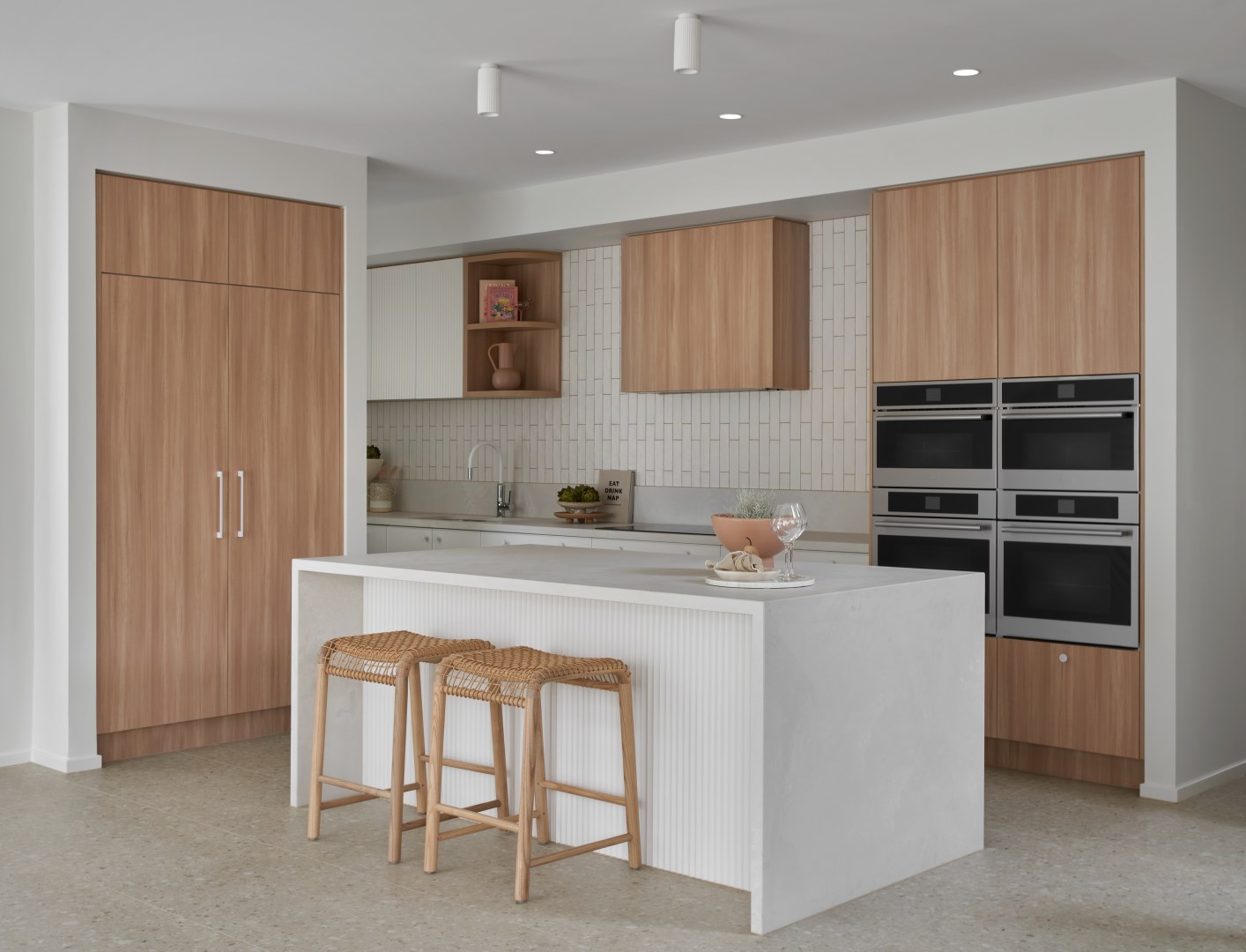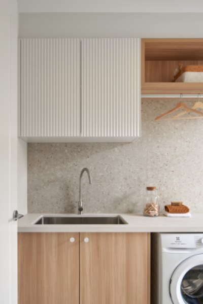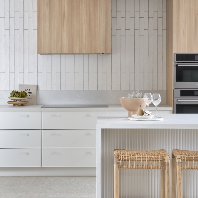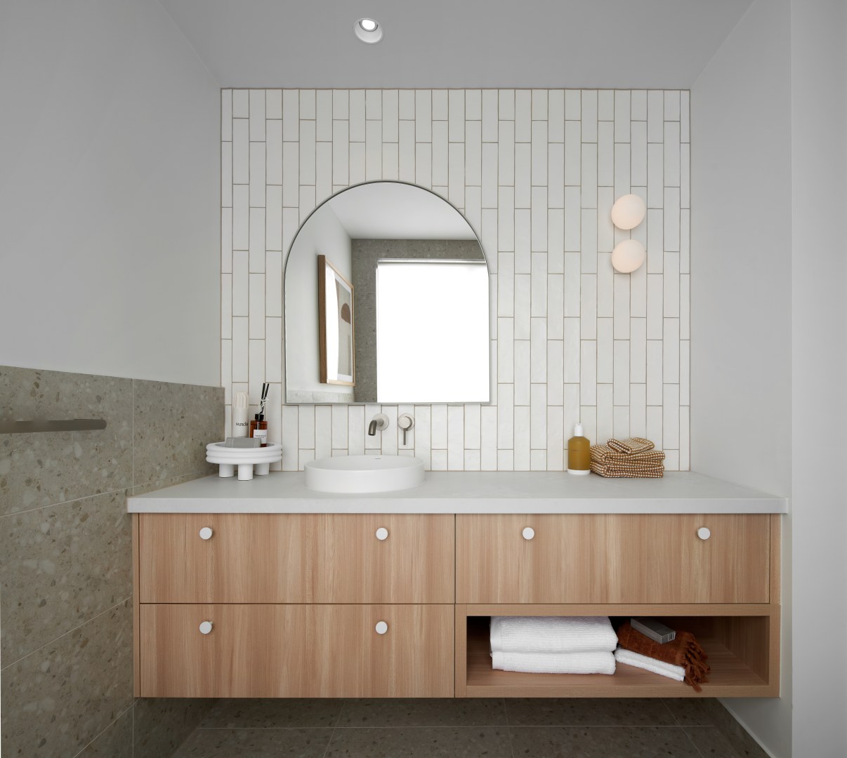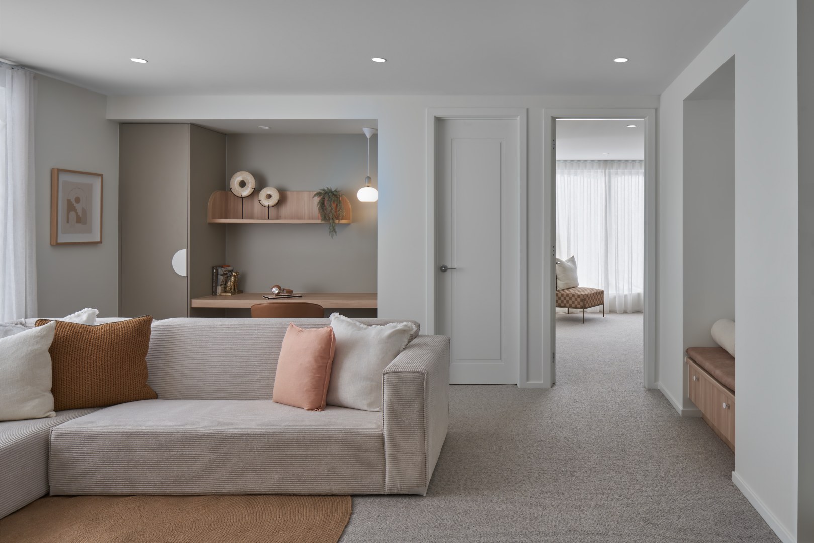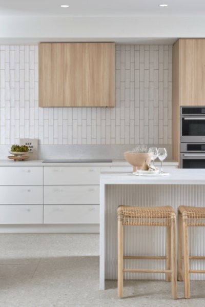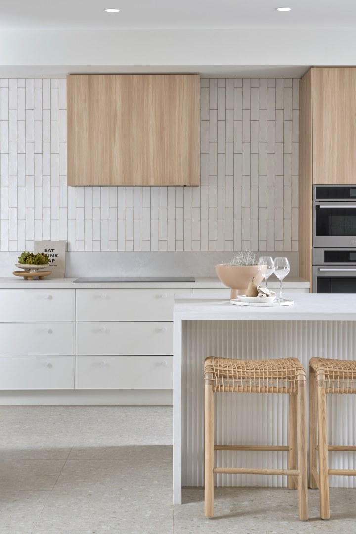 Tropical resort-style living at Home. A Muted Mediterranean scheme with calming light-filled spaces, considered detailing, soft organic curves & textures deliver comfort to this contemporary home.