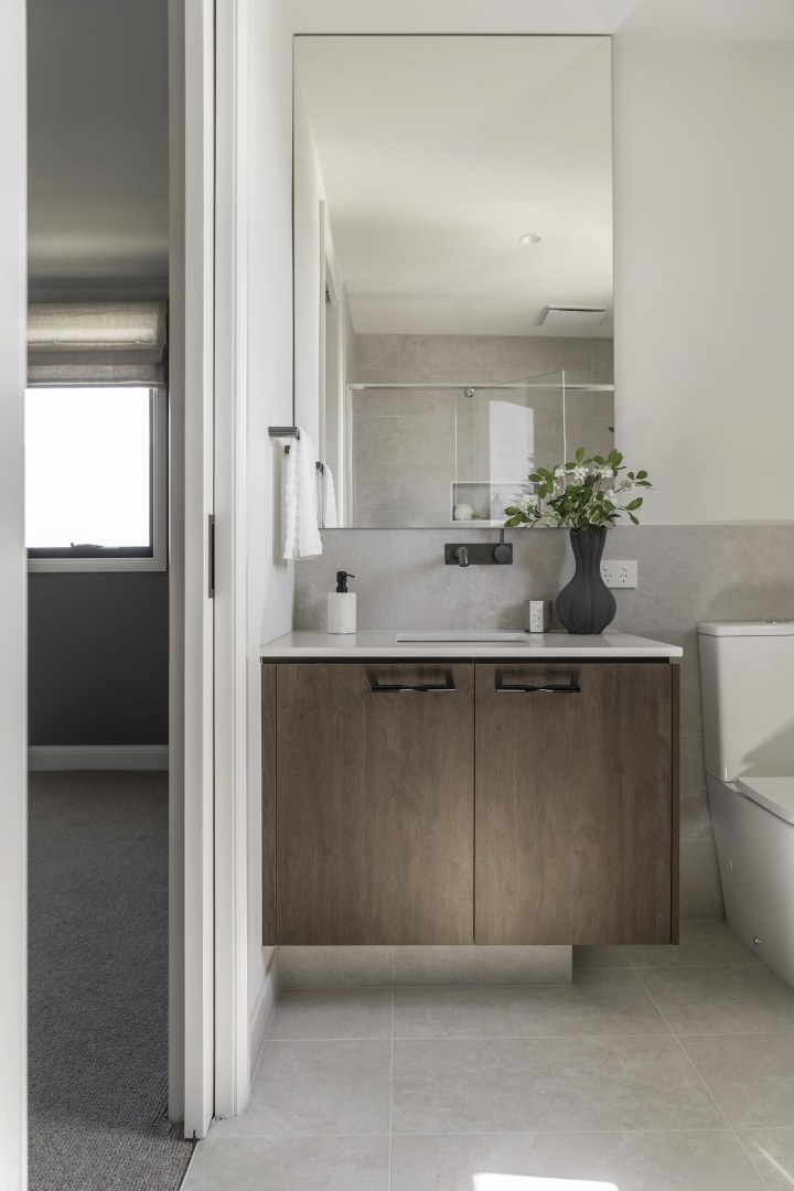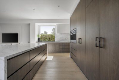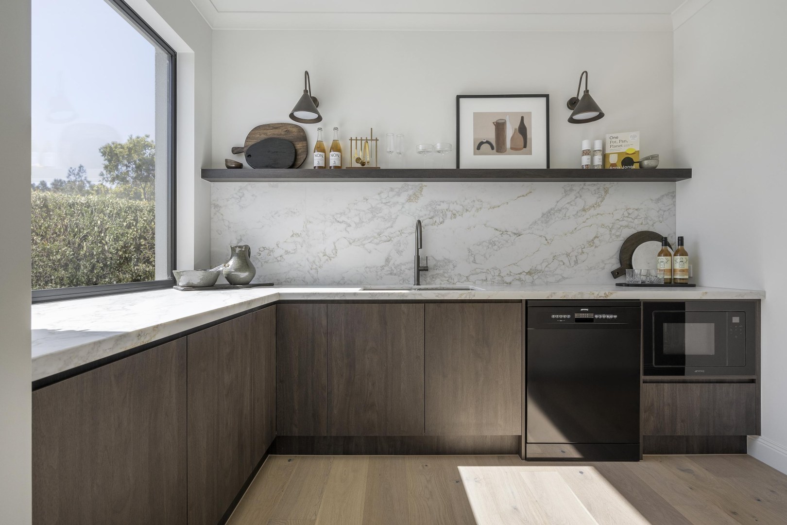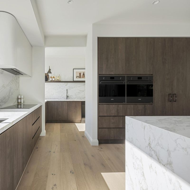 The Brighton 53 is contemporary Parisian elegance reimagined. Dark oak, linen and marbled stone meet decorative mouldings in a home that feels both timeless and current. Spacious zones and refined finishes create flow and intention throughout, a considered design made for those who value beauty in the everyday.