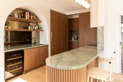 A Mid-Century Modern design bringing old Hollywood elegance with modern features.