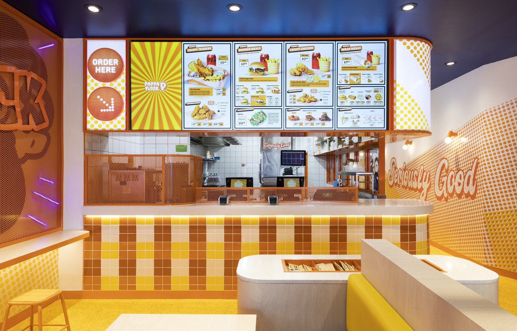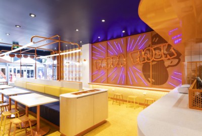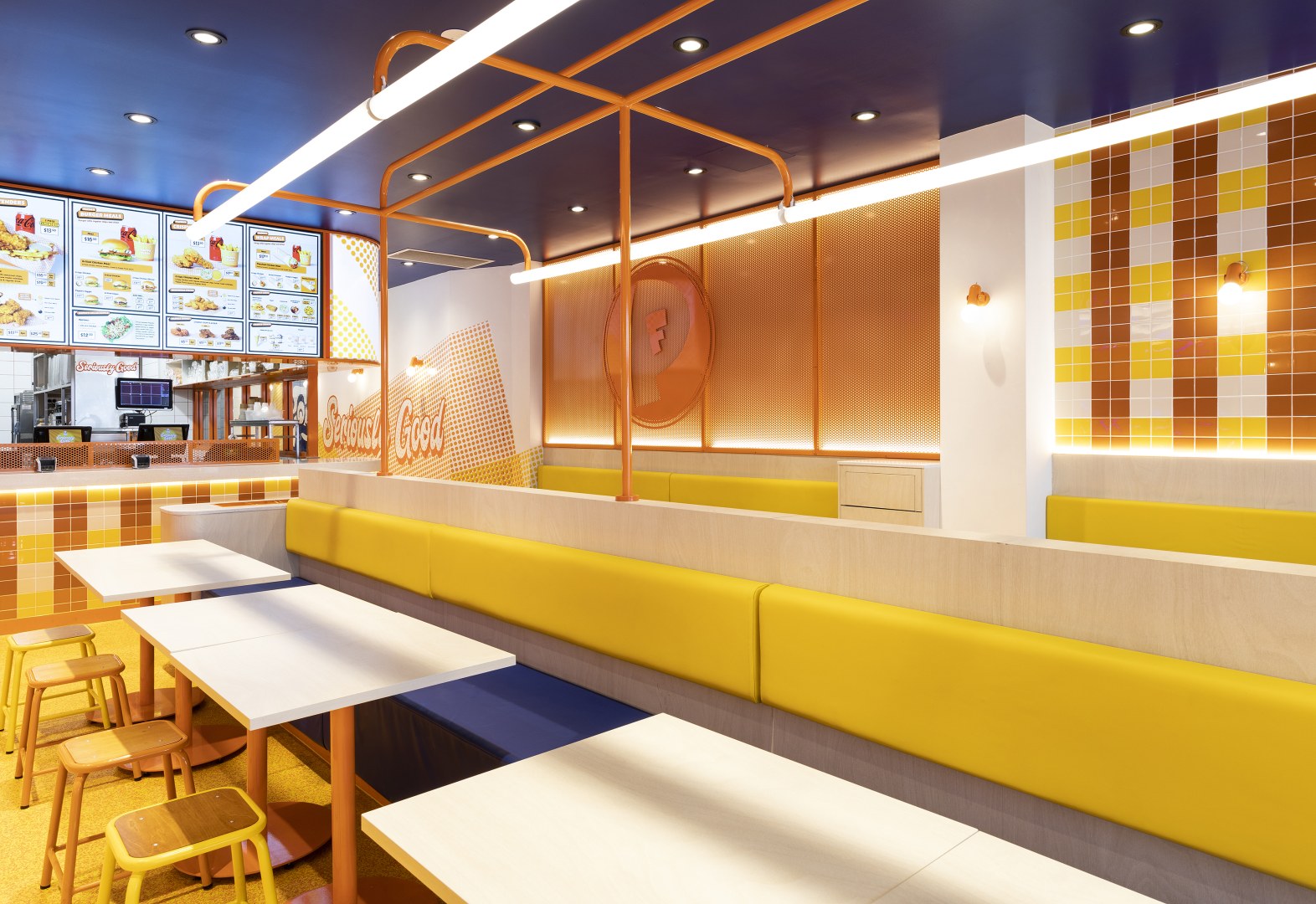 Pappa Flock evokes a sense of nostalgia. Our exploration of the essence of a 90’s diner has been cultivated to create a unique dining experience, that samples sensory overload, with touches of brightness, energetic neon, excitement, yet cosy spaces for escapism. Creating a novel dining experience.