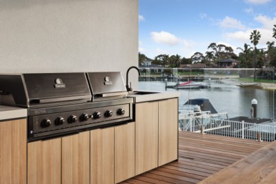 This Patterson Lakes stunning outdoor was purpose-built to withstand the elements & implement all required appliances to best suit the owner's needs. Complemented with polytec Natural Oak doors this job not only looks fantastic but will be an asset for the owners to enjoy for years to come.
