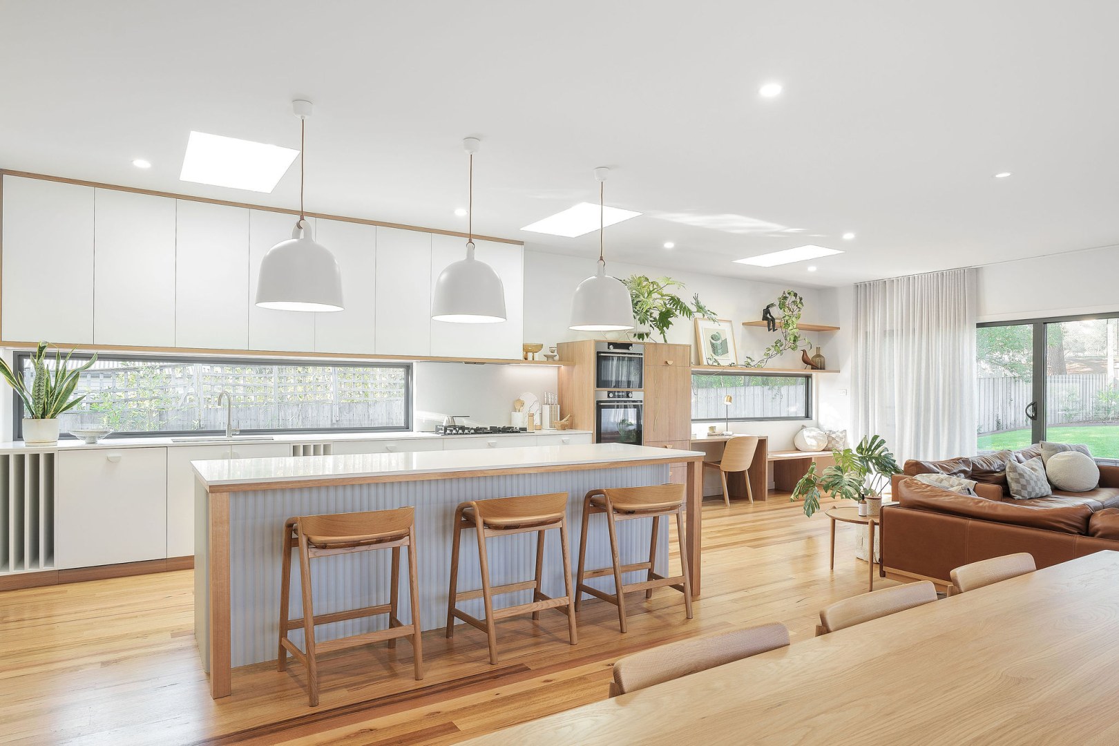 This was a modern extension to an older home. The client wanted an open plan living space, that was modern, and functional but did impose on the existing house. The extension has been a completely new add on with a new kitchen, living, dining, laundry and bathroom.