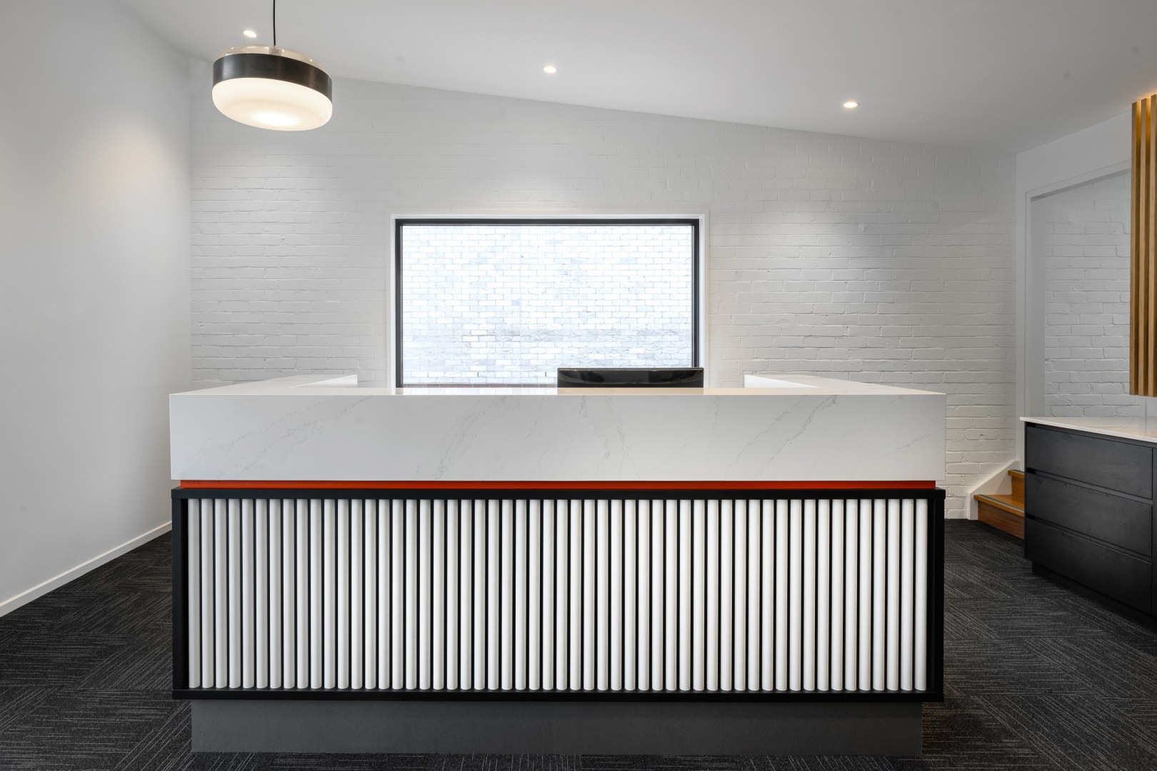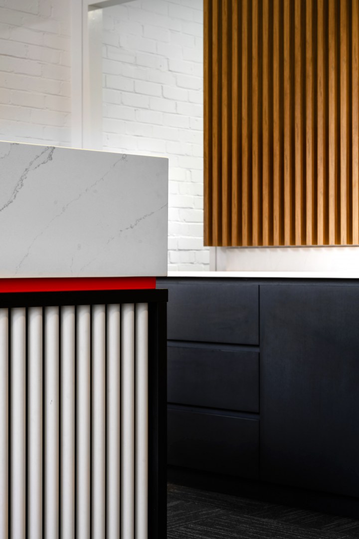 A space that took inspiration from a cocoon as a metaphor for what home means. Black Woodmatt Steccawood frames the half-rounded Bianco Woodmatt Steccawood with Platinum Leaf Melamine skirts, working in concert with a Prime Oak Woodmatt Steccawood feature wall and Black Finegrain Woodmatt cabinetry. polytec elements crossing and weaving, enveloping the space, symbolising the cocoon. A design imbued with refined materials to illustrate the craftsmanship involved in the process of creating a home.