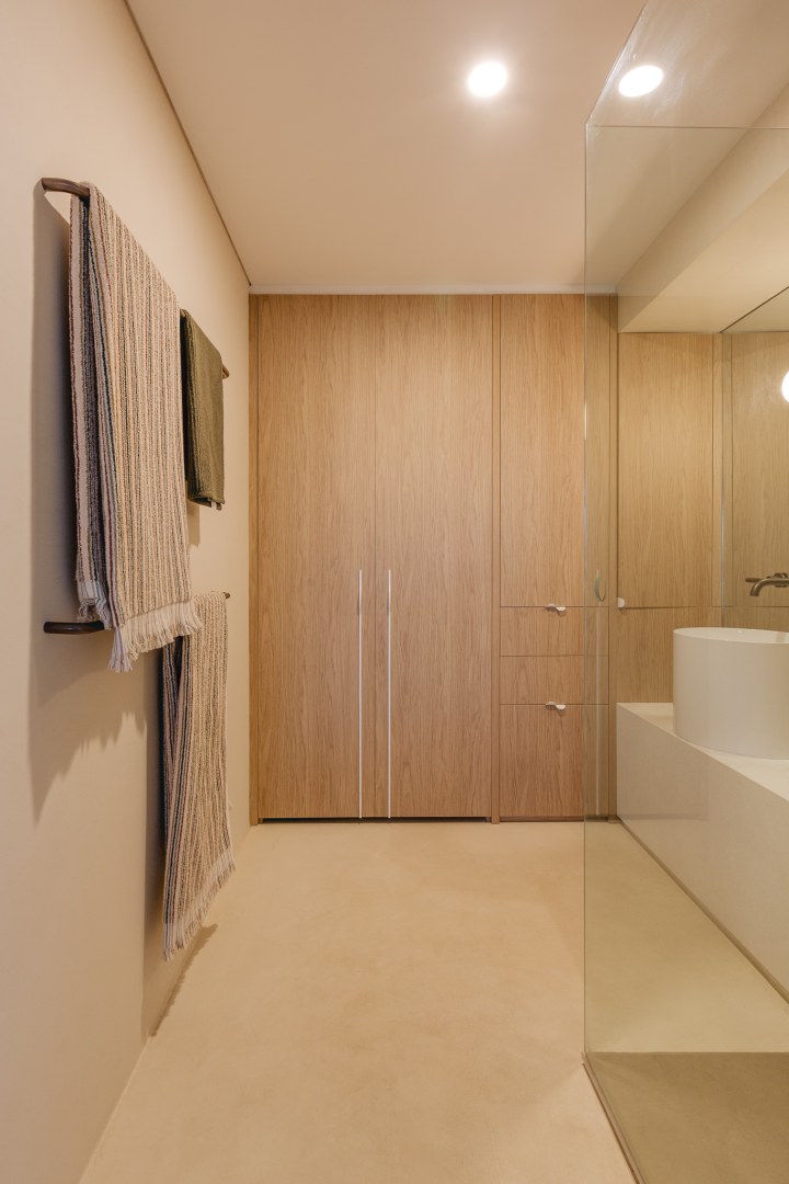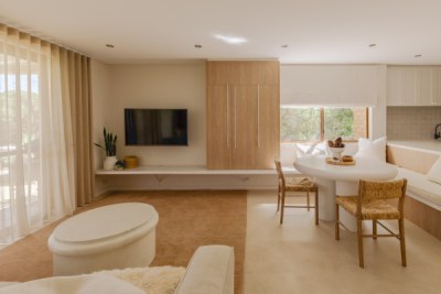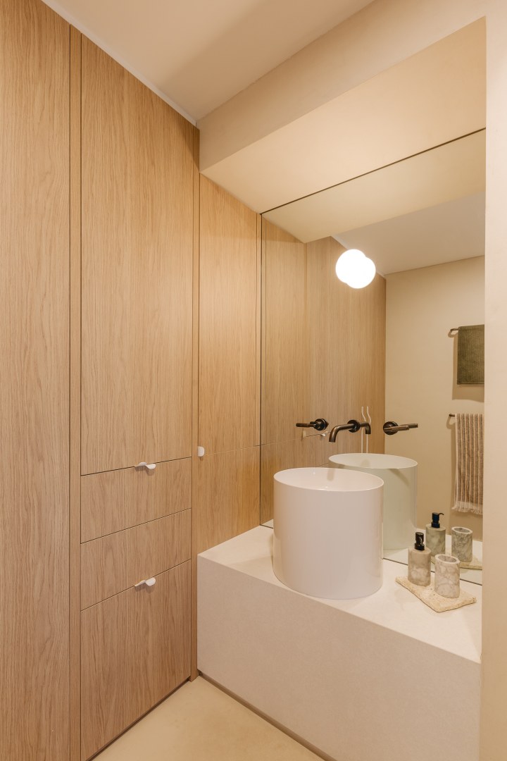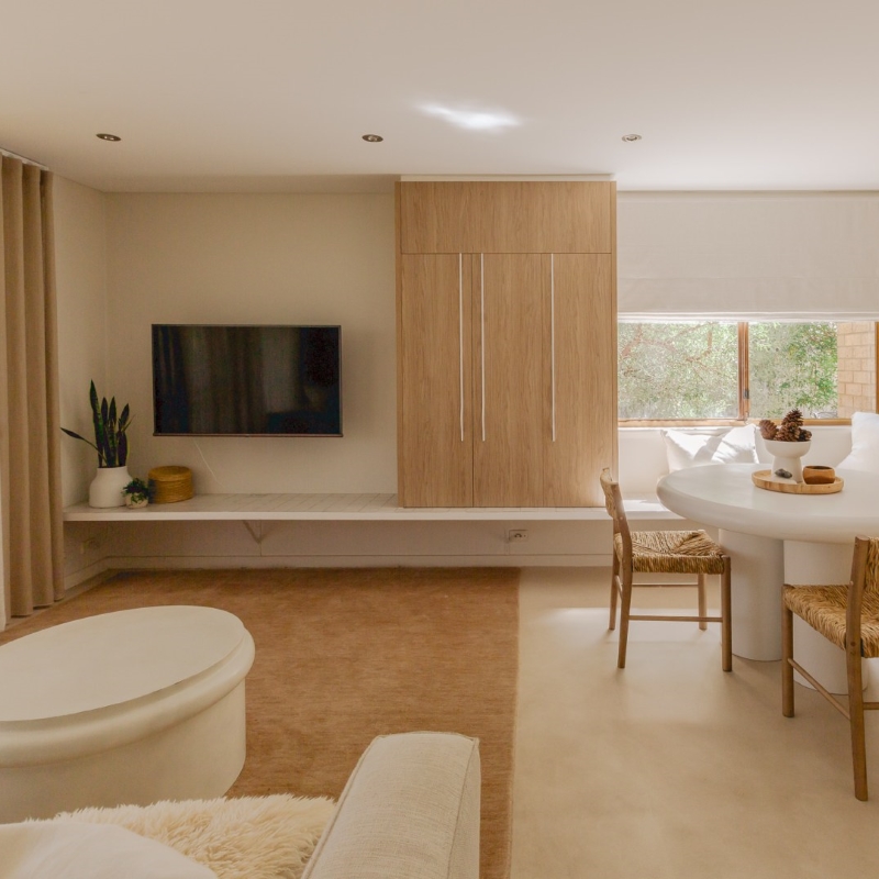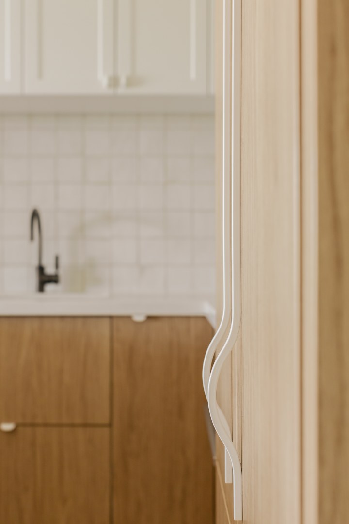 Bond Theory was approached to breathe new life into this old school apartment 70’s. This compact space was to be designed efficiently to capture living needs whilst creating a modern ocean retreat. The textural creamy palette showcases polytec’s Boston Oak and natural white paired with reflective Spanish hand cut ceramics and smooth micro-cement.