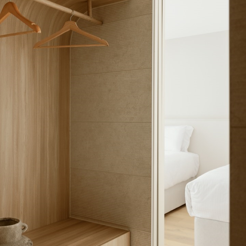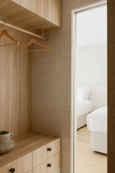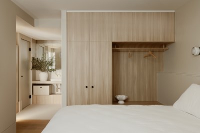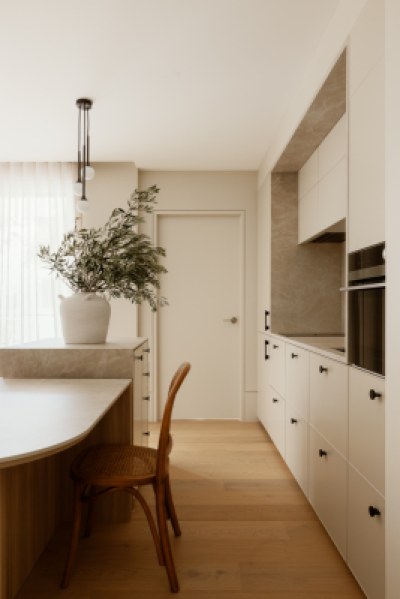 privately owned suite at Sebel, Noosa Heads, we saw an opportunity for sanctuary and stillness. Paths of travel are curated as soft, seductive transitions. Every detail considered to maximise ease and the palette is robust, textural, and creamy. Celebrating the uniqueness of the revived Noosa Heads holiday and equally holding space for romance, tranquillity, and escape