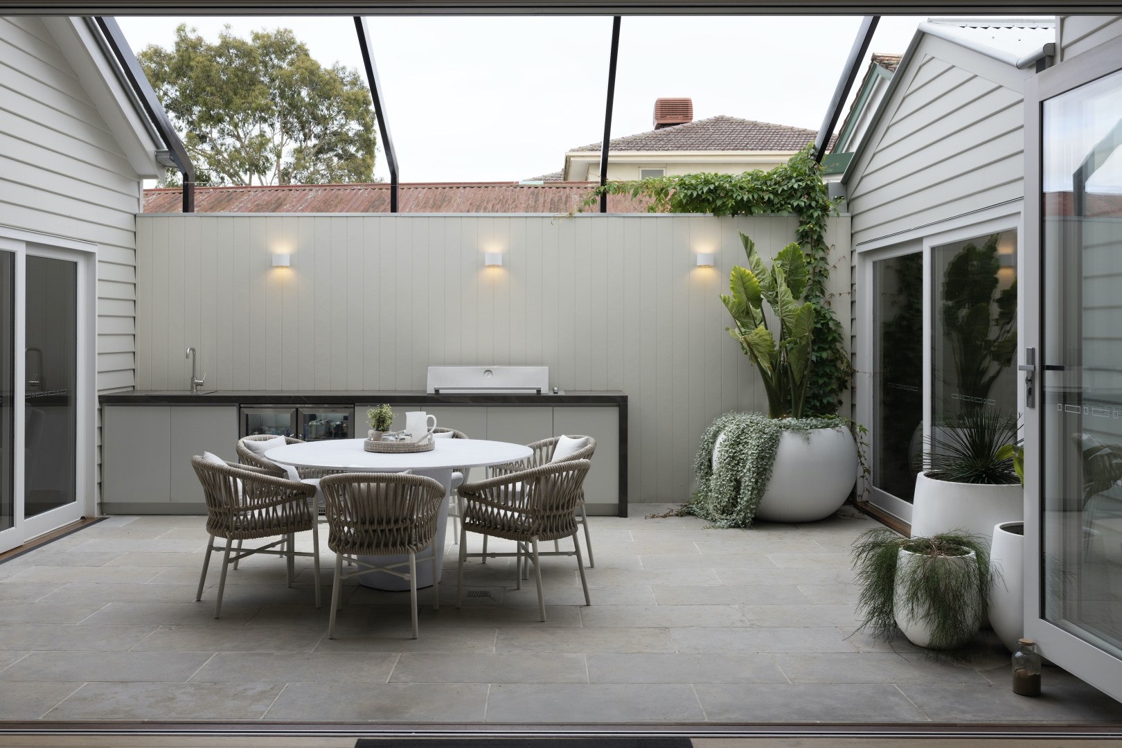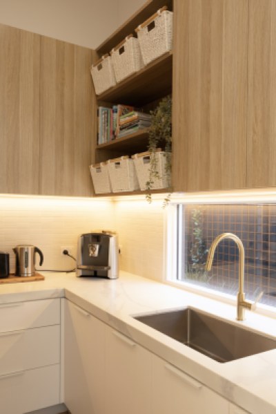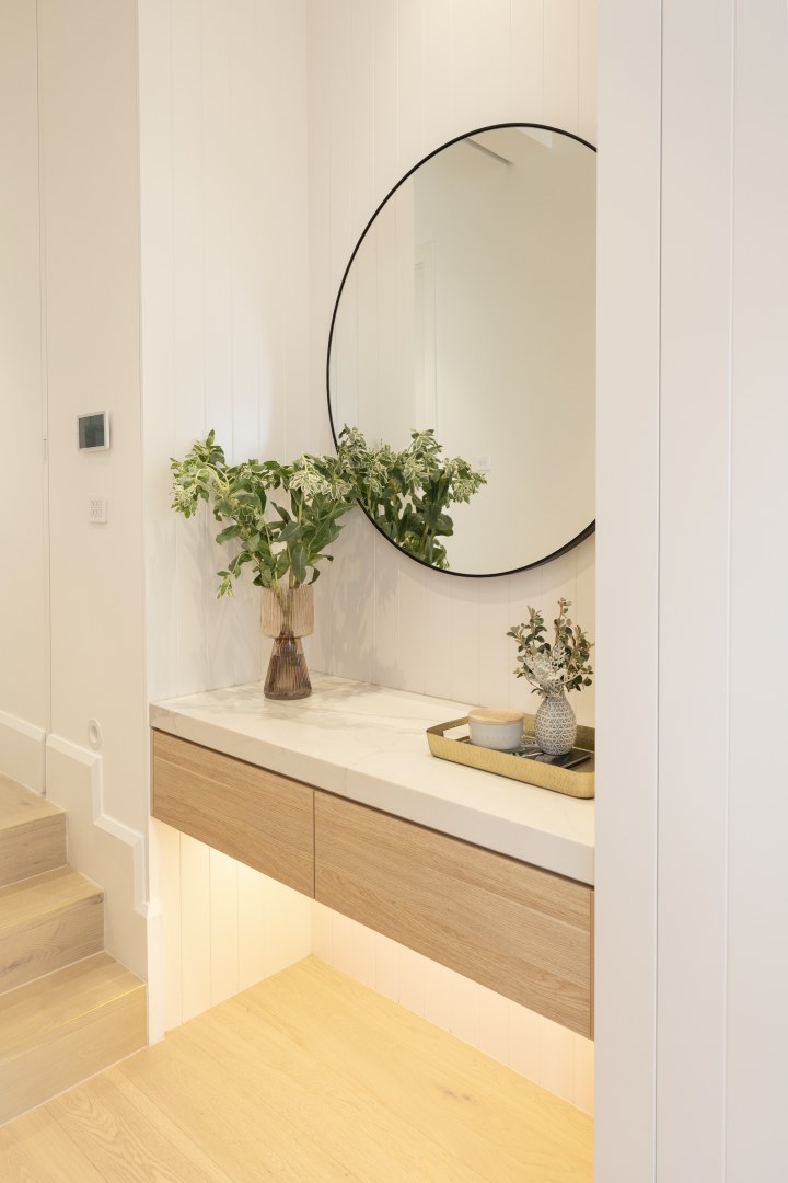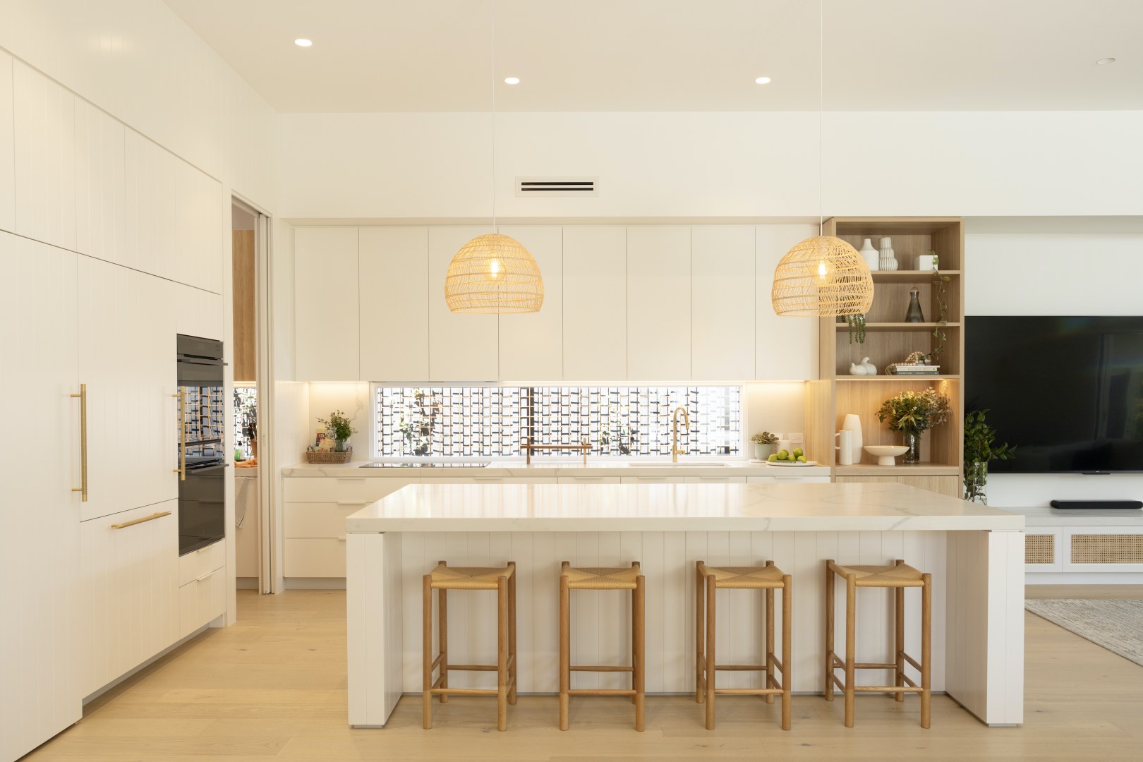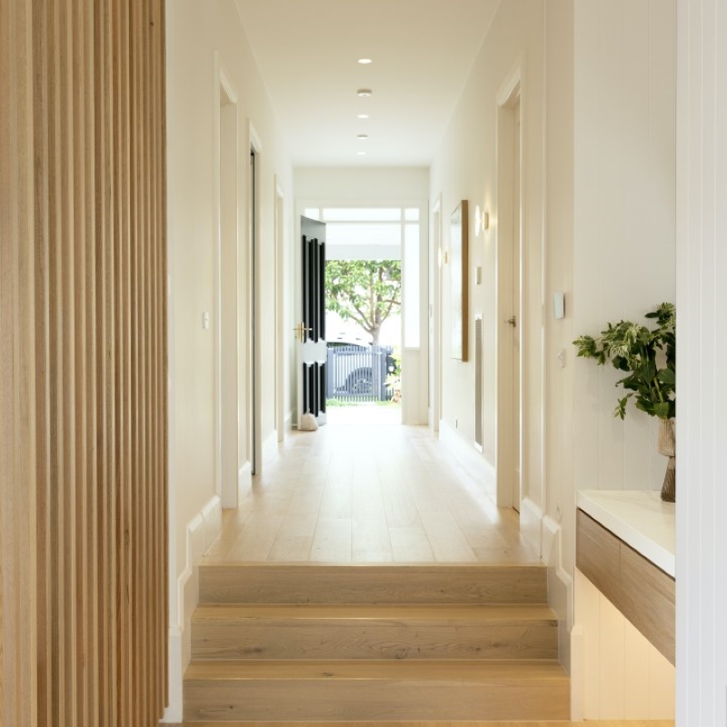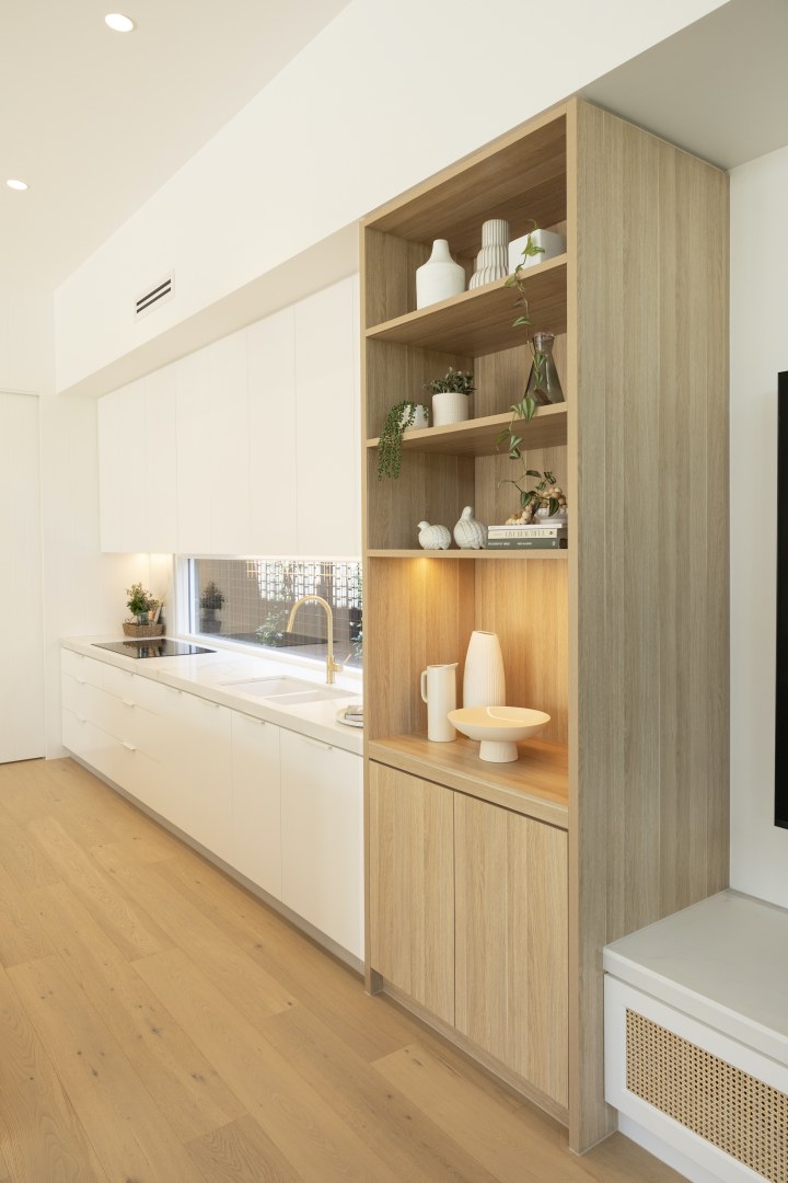 Although located in the Northern Suburbs of Melbourne this Coastal inspired home features light colours and whitewashed timbers The Californian Bungalow has been completely renovated inside out and extended creating luxury spaces of generous dimensions Natural Oak Coastal Oak and Classic White have been used extensively in both flat and rippled profile Texture has been used to create interest and depth VGroove profiles timber handles and rattan door inserts add to the relaxed beachy vibe