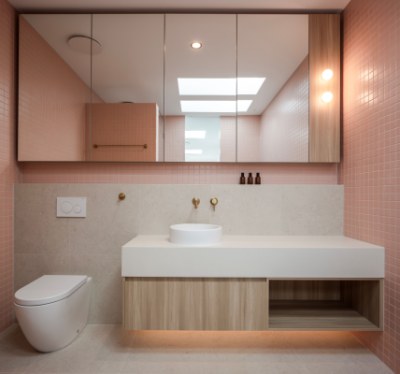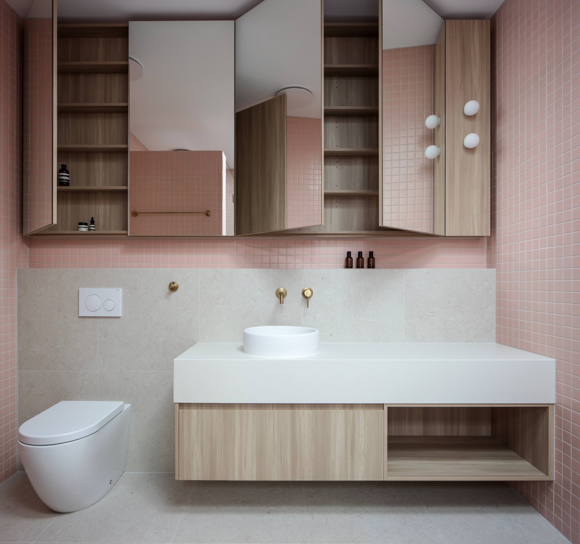 Inspired by the chic style of Miami's South Beach aesthetic, featuring a cool blend of textures such as concrete render and distinctive Austral blocks. We aimed to showcase a more playful and colorful side of Immackulate while highlighting our expertise in high-end interiors. One duplex is adorned in captivating shades of pink, creating a vibrant and lively ambience. In contrast, the other residence showcases serene green features, offering a tranquil and elegant retreat.