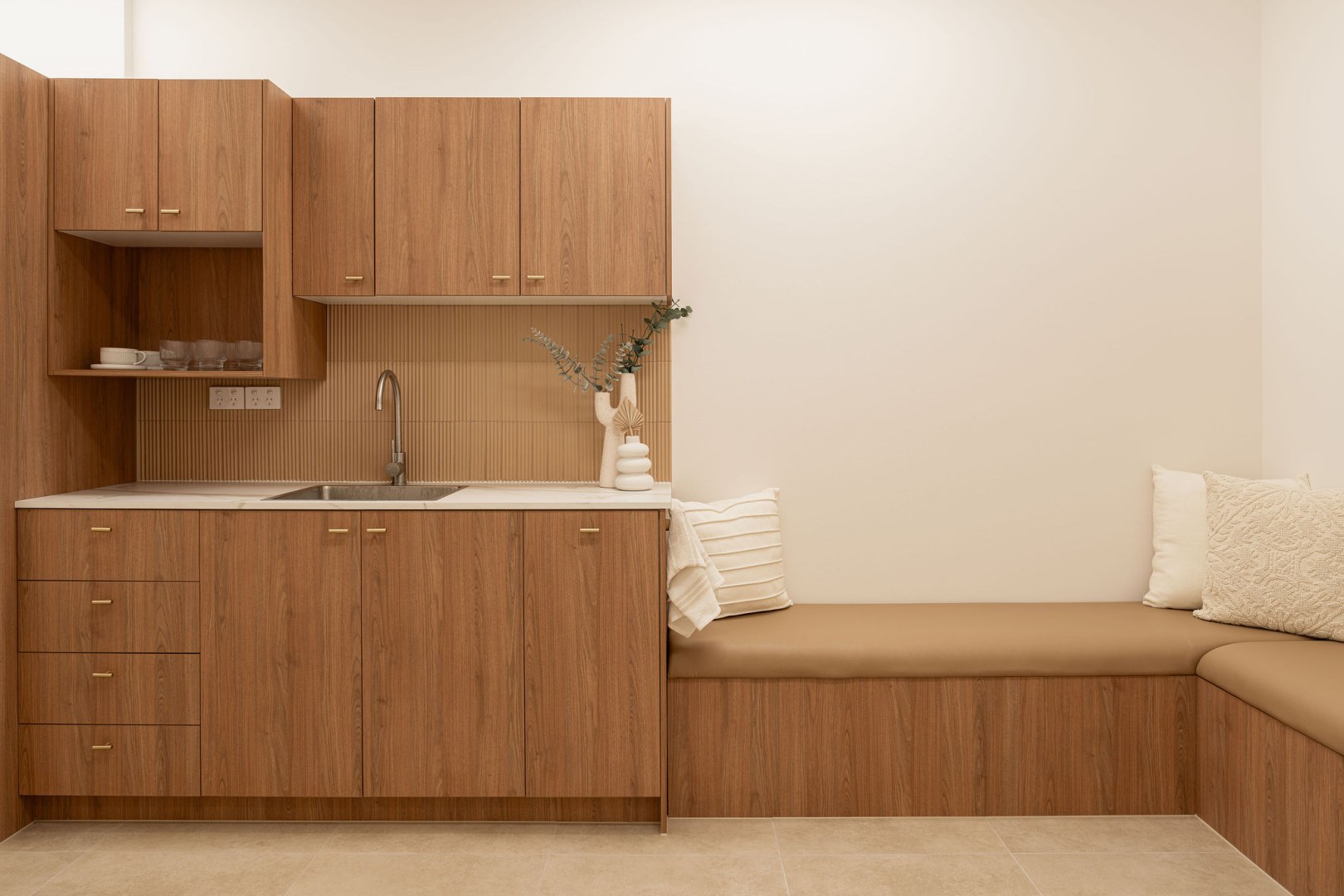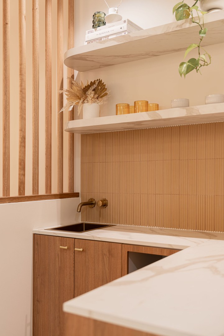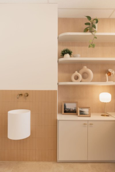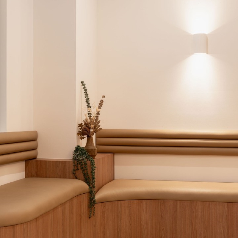 Crafting a bespoke physiotherapy precinct that not only celebrates design but meets all the functional requirement of modern health hub. With Modern Mediterranean Coastal being the chosen design direction, it was imperative to include finishes that emulate the design brief. Through the use of textured Tasmanian Oak and the contrast of Gossamer White, we contemporised this clinical setting. polytec's colours provided a fundamental base to develop the ongoing design.