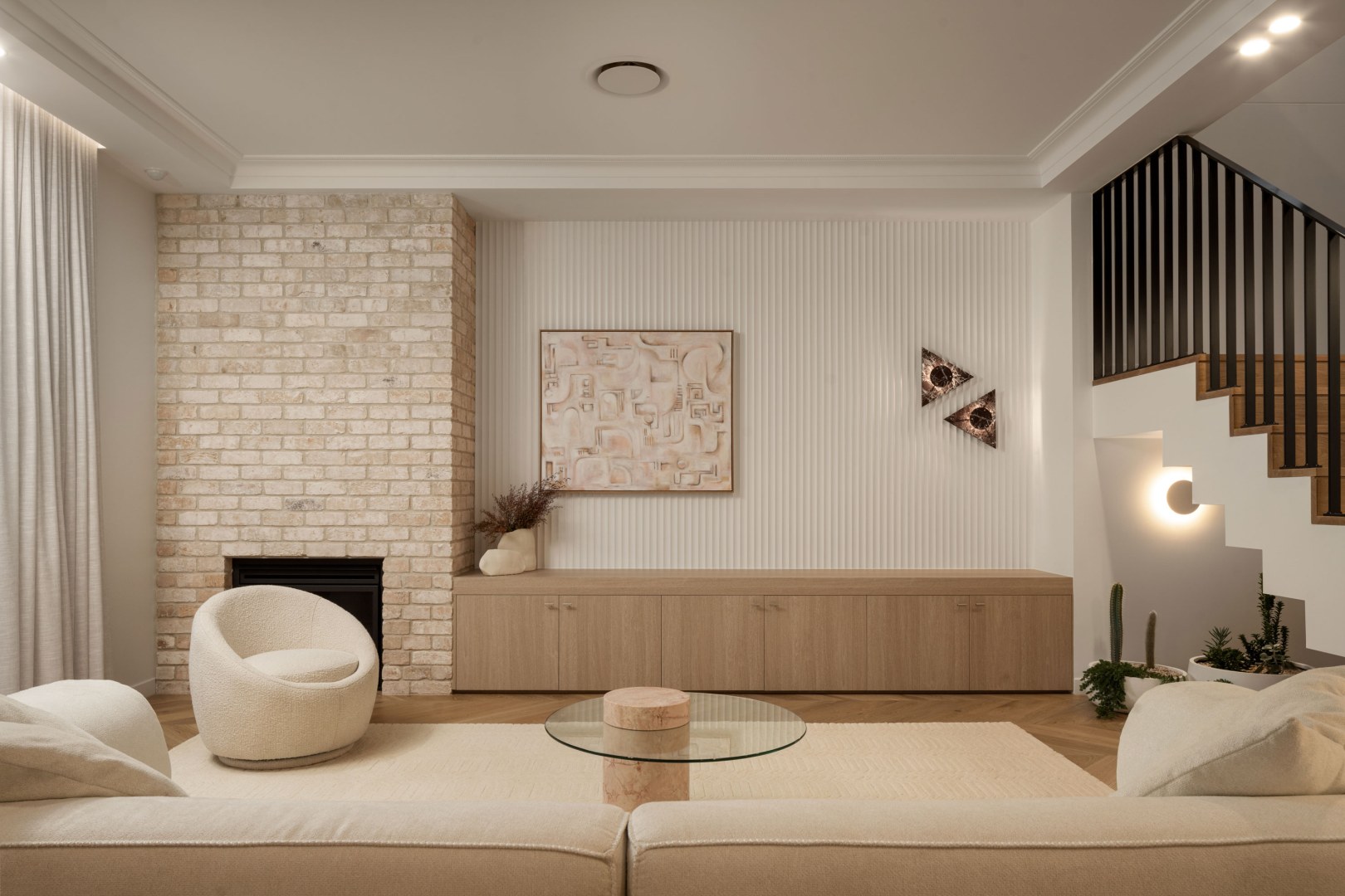 The objective of the Sydney Av Project's design brief was to fashion a design concept that incorporates the sought-after Modern farmhouse style, while also infusing it with traditional rustic appeal alongside daring and diverse elements. To achieve this, we seamlessly merged exterior and interior elements, all treated with a whitewash finish to evoke rustic charm. Subsequently, we introduced a striking contrast by integrating classic white modern profiles and bold marbles into the interior finish.
