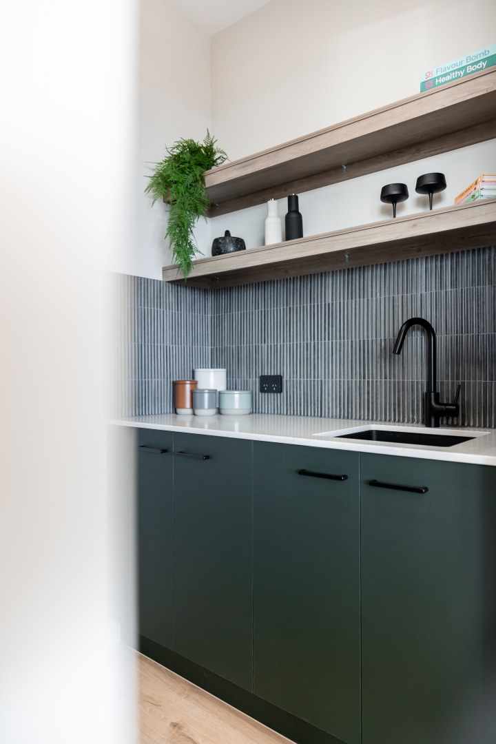 Featuring Botanic Venette & Anitco Oak Woodmatt finishes throughout, this home is inspired by the natural outlook of Hawley Beach, exemplifying understated elegance & functionality.