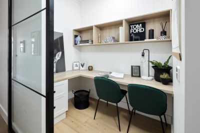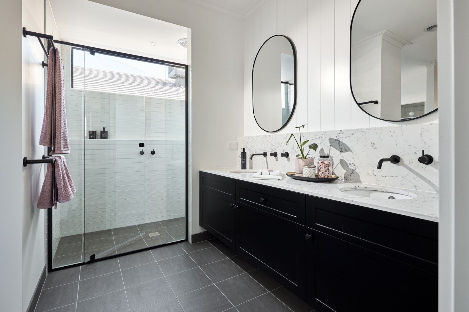 A refined mix of contemporary and traditional style, The Harper, offers exceptional family living on a spacious and sophisticated scale. The classic front verandah features customized trimming and fretwork, with James Hardie weatherboards teamed with render to create a classic façade. It is upon entering The Harper that the true elegance of the home is unveiled. Feature timber detailing to the entry and lounge create a distinguished feel. The hallway continues the feature timber detailing.