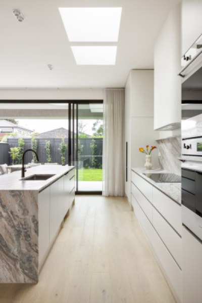 Featuring polytec Amaro Matt alongside Manor Oak Woodmatt. A pairing that brings warmth, depth and a timeless aesthetic to modern interiors.